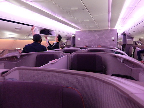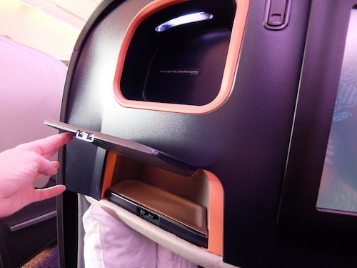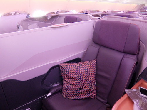 Upon boarding the Singapore Airlines new A380 we were blown away by the sense of space in the business class cabin. The cabin is configured in a 1-2-1 formation and the absence of central overhead storage bins in business class gives a great sense of height and space.