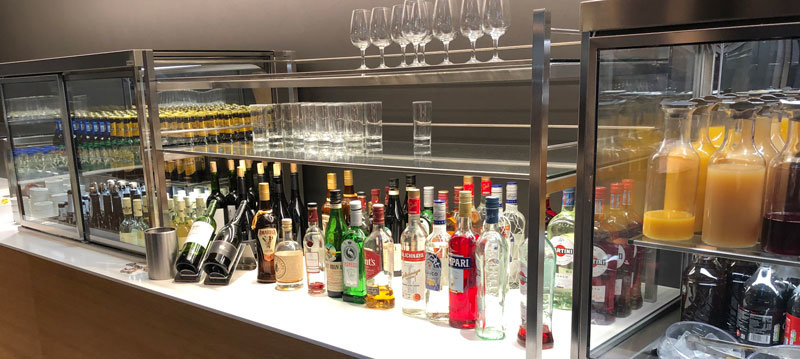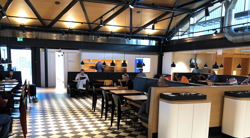 The first thing we noticed about the lounge was the beautiful interiors, wooden panelling and leather made the lounge feel more like a comfortable restaurant, or Swiss Ski lodge rather than an airport lounge.