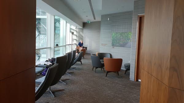 A section of the lounge includes a row of arm chairs with views over the tarmac.