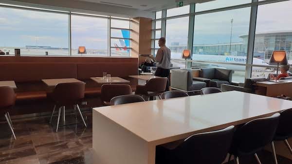Air Canada Maple Leaf club Members + Guests are allowed for a fee of $20-$30CAD depending on time of day.