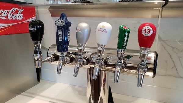 Beverages including tap beers are available for lounge guests to help themselves to, and selection of complimentary beer, wine and spirits are available at the staffed bar.