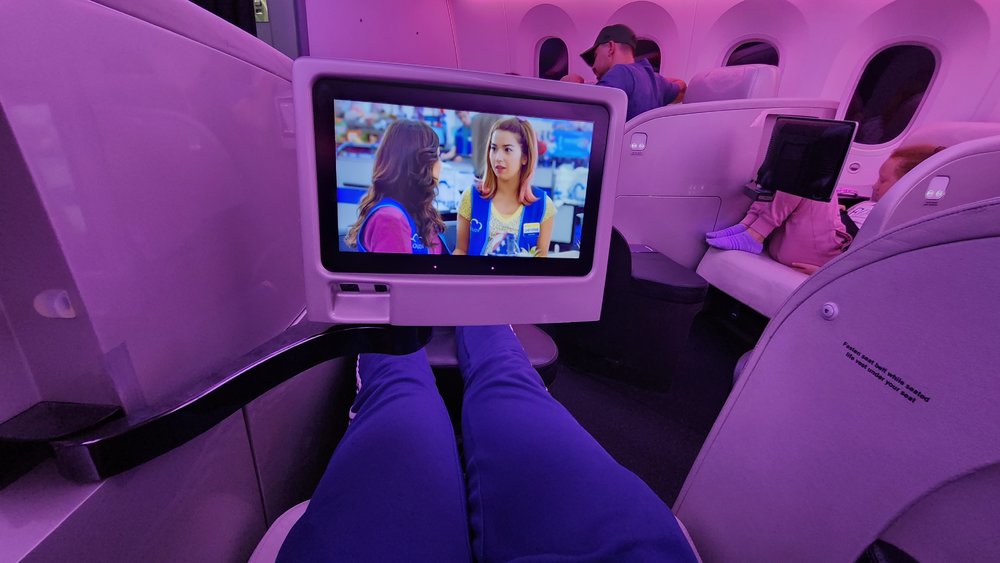 Kicking off the first leg of the journey was the flight from Adelaide to Auckland on the Air New Zealand Airbus 321 Neo. This aircraft doesn't offer a Business Class or Premium Economy cabin, so booking 'Works Deluxe' is the closest you'll get to Business Class. The first few rows are dedicated to Works Deluxe passengers, with a guaranteed middle seat blocked out for additional space and extra legroom. If there's a higher number of Works Deluxe bookings, they will block out the middle seat in additional rows but these won't have the extra leg room.