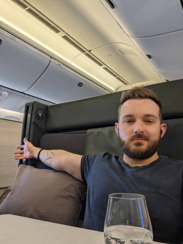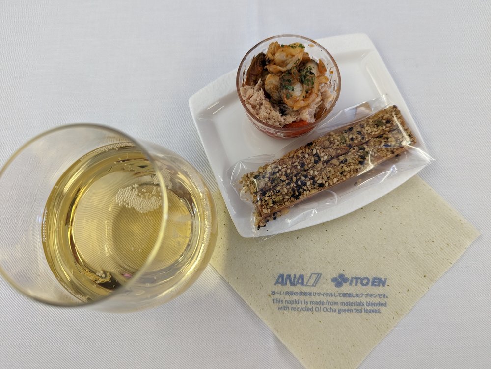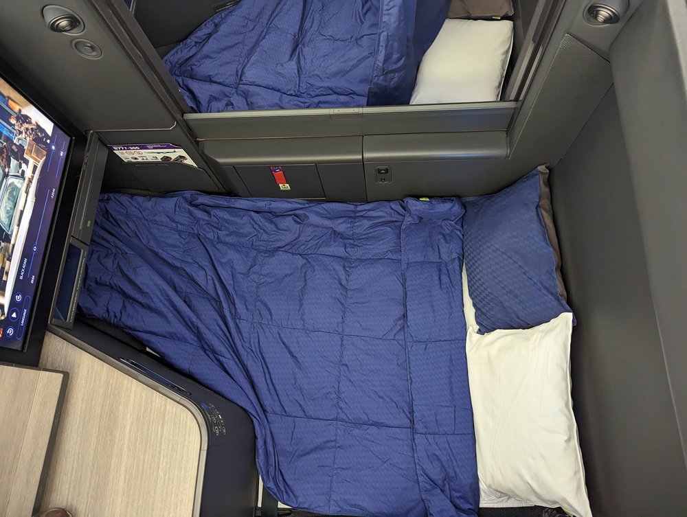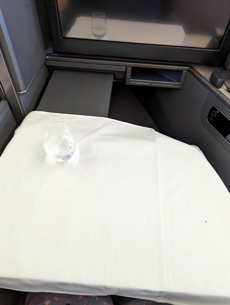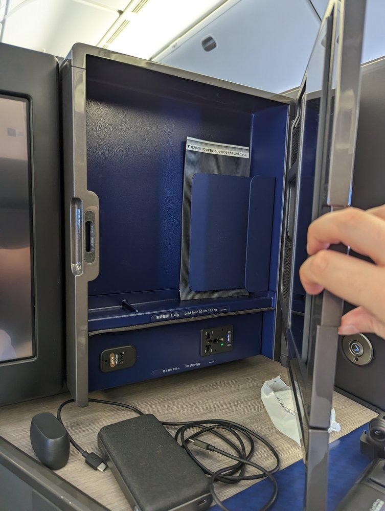 Despite limited seat storage, the overhead bins were helpful for storing the majority of our belongings. The 24-inch 4K UHD touchscreen and Nishikawa Air Cycle bed pad enhanced our comfort. Dining was a highlight, with impeccable service and delicious options from both Japanese and Western menu, complimented by a fantastic on-demand ramen service.