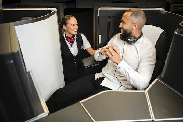 The new Club Suite features a luxurious flat bed, a suite door for added privacy, and a 1-2-1 cabin configuration with direct aisle access for every business class passenger.
