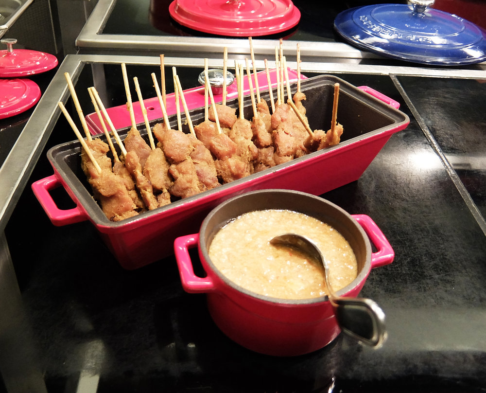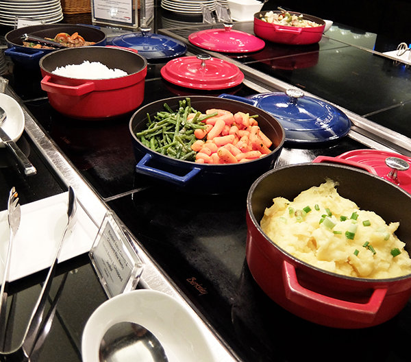 As with other lounges, there was a variety of food options available inside the lounge, all of which were self serve. Along with fresh fruit, pastries and desserts there were also hot food options which included English Stew, mash potatoes, and vegetables, and because it is Singapore there was, of course, some delicious Satay.