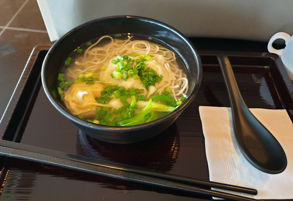 The dining selection was a delightful mix of French and Asian cuisine with a great selection of cheese and fresh bread as well as the Cathay Pacific Noodle bar, which was a really nice touch, as the delicious noodles were the perfect light meal before the flight. Other food options included fresh salad bar, fresh nuts and pretzels, as well as a fully stocked self, serve bar and tea and coffee station.