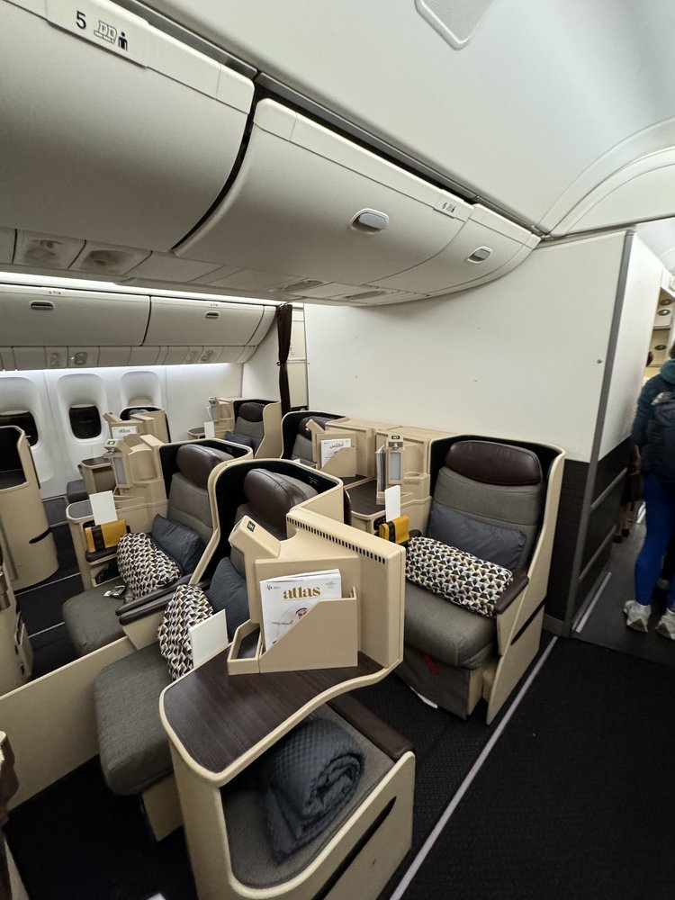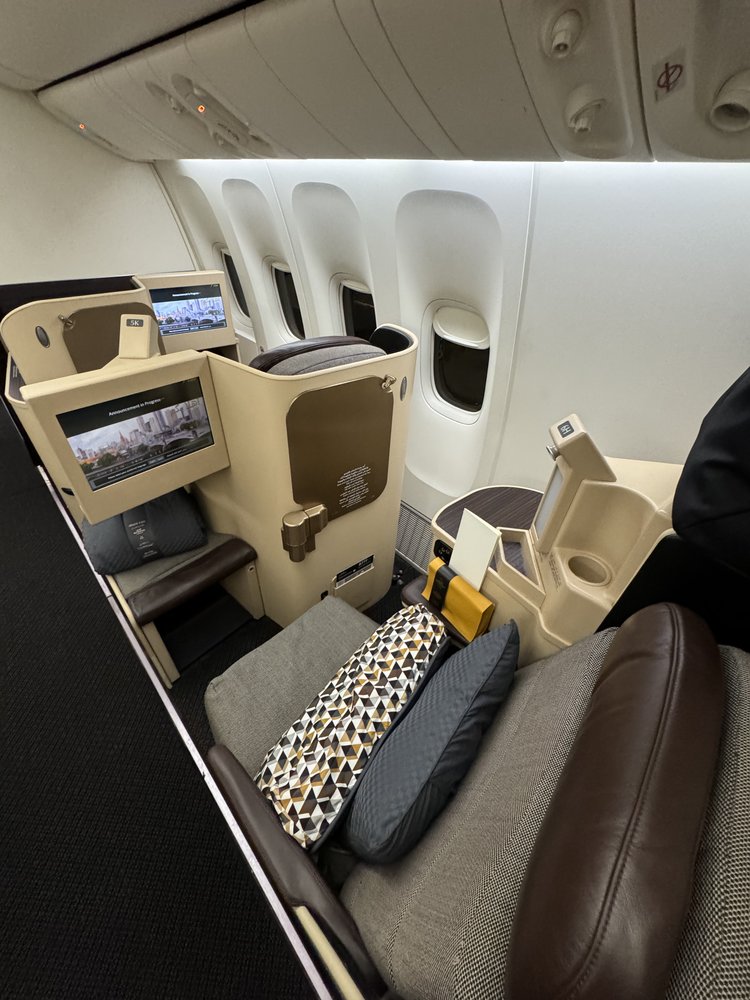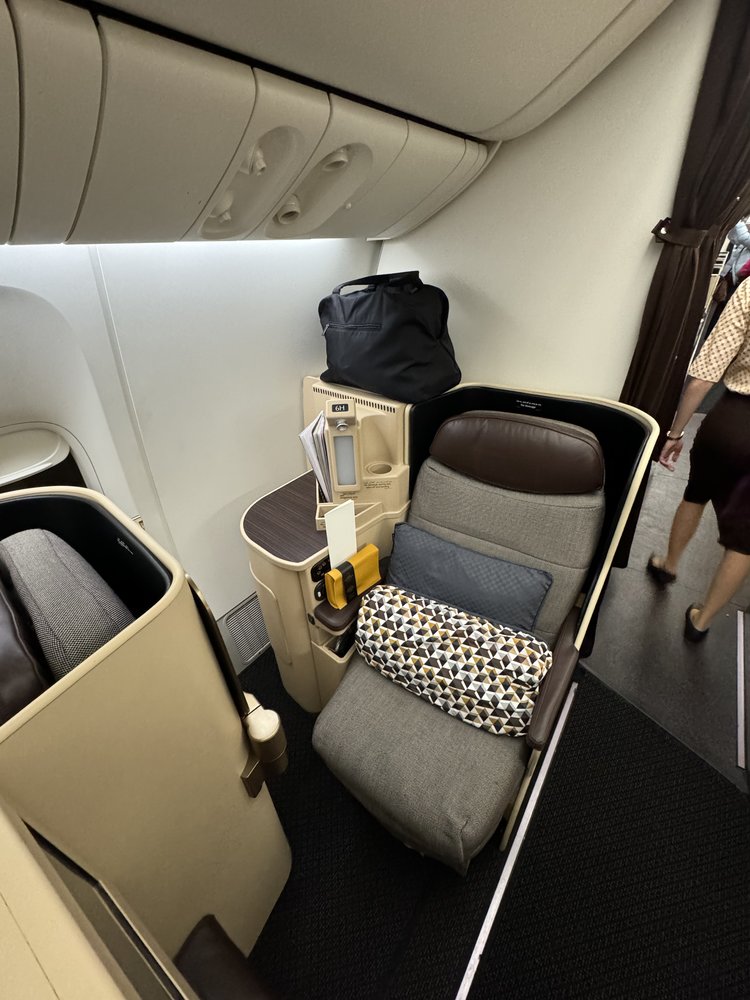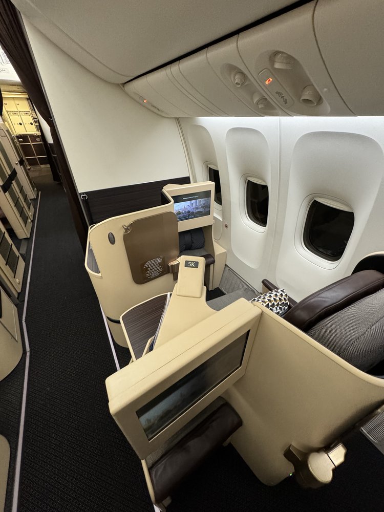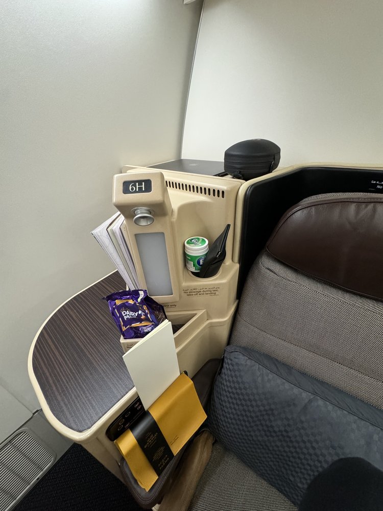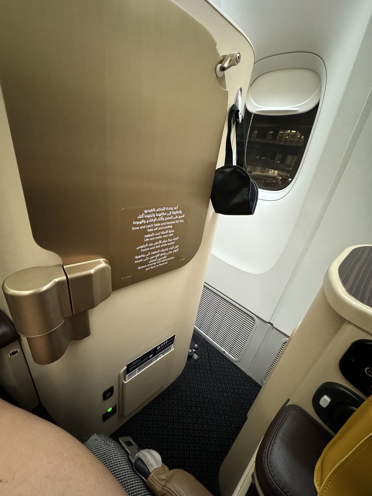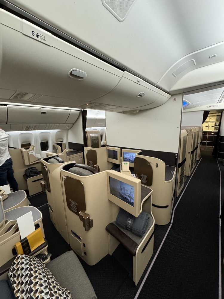 To our luck, we were seated in 6H, meaning we were on the right side of the Etihad 777-300ER Business Class cabin, and right up the front. We boarded at the same time as First Class passengers and walked past their cabin which felt a bit odd.