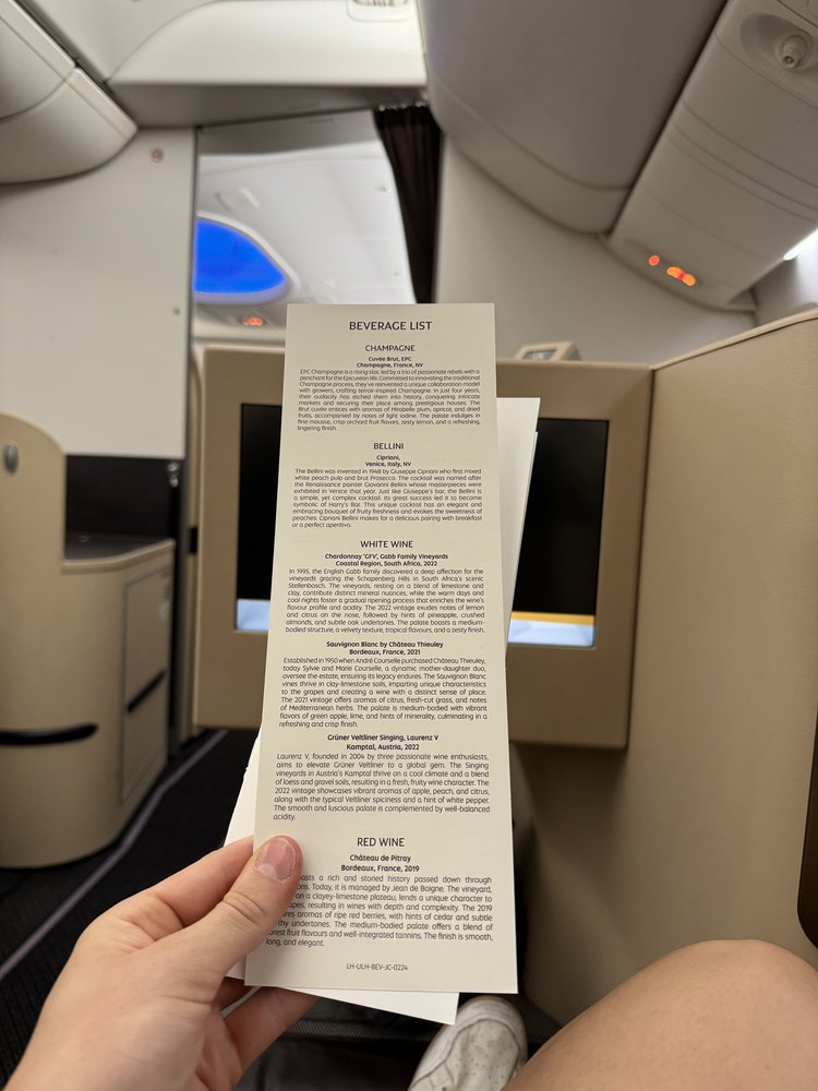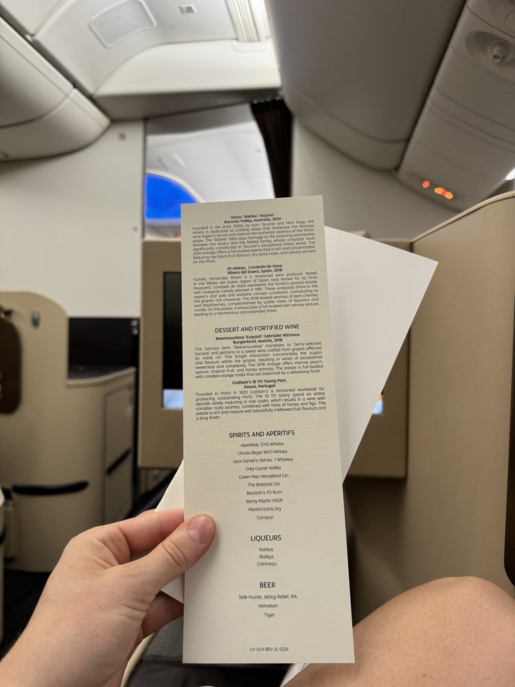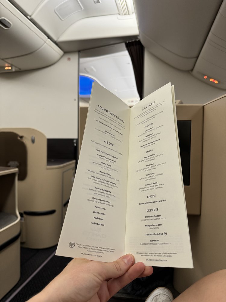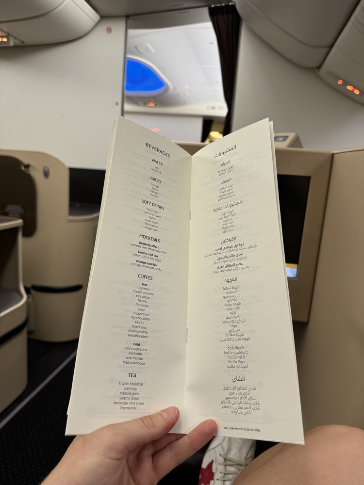 With an amicable selection of beverages to choose from, and tasty champagne, we enjoyed the inflight dining experience Etihad 777-300ER Business Class provided. Other mentions also to the friendly staff.