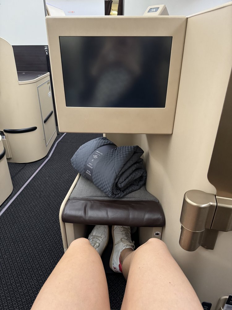 Our small section of the front of the Business Class cabin meant we were in close proximity to the cabin crew station and the engines of the aircraft. This made it a bit difficult to hear announcements over the loudspeaker.