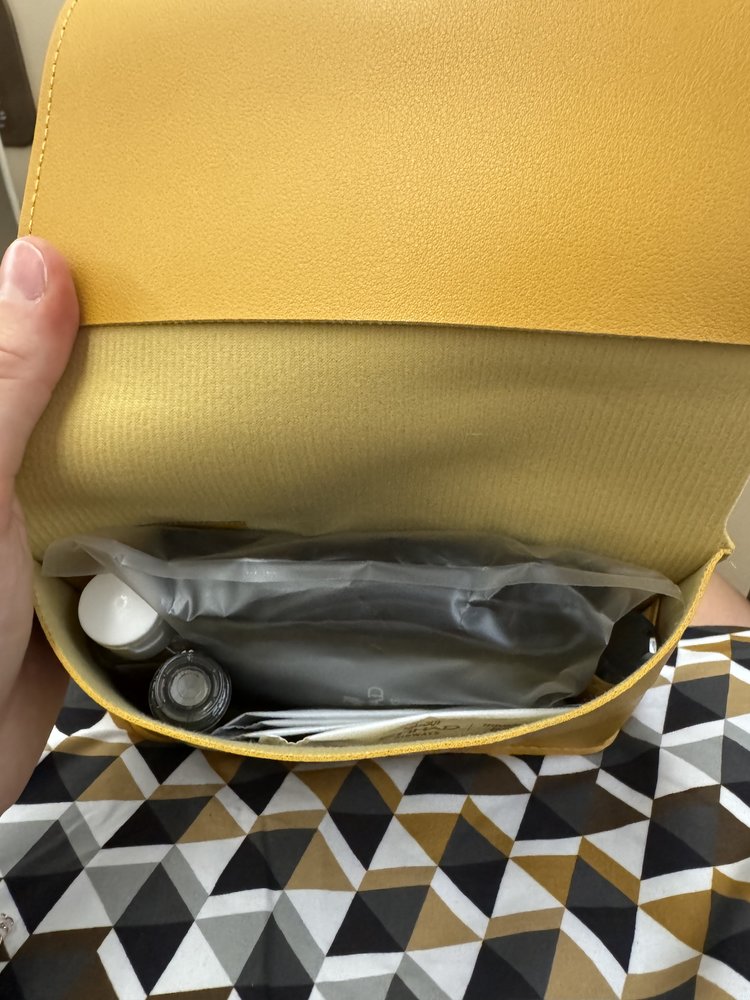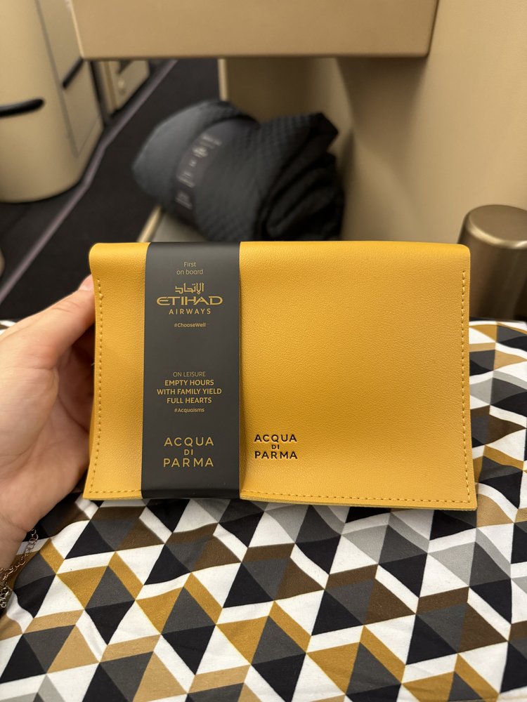 We received a blanket, mattress topper and pillow on arrival as well as an Acqua Di Parma amenity kit with products such as toothbrush, toothpaste, hand cream, lip balm, eye mask, socks and hand sanitising wipes. These all helped contribute to a comfortable journey.