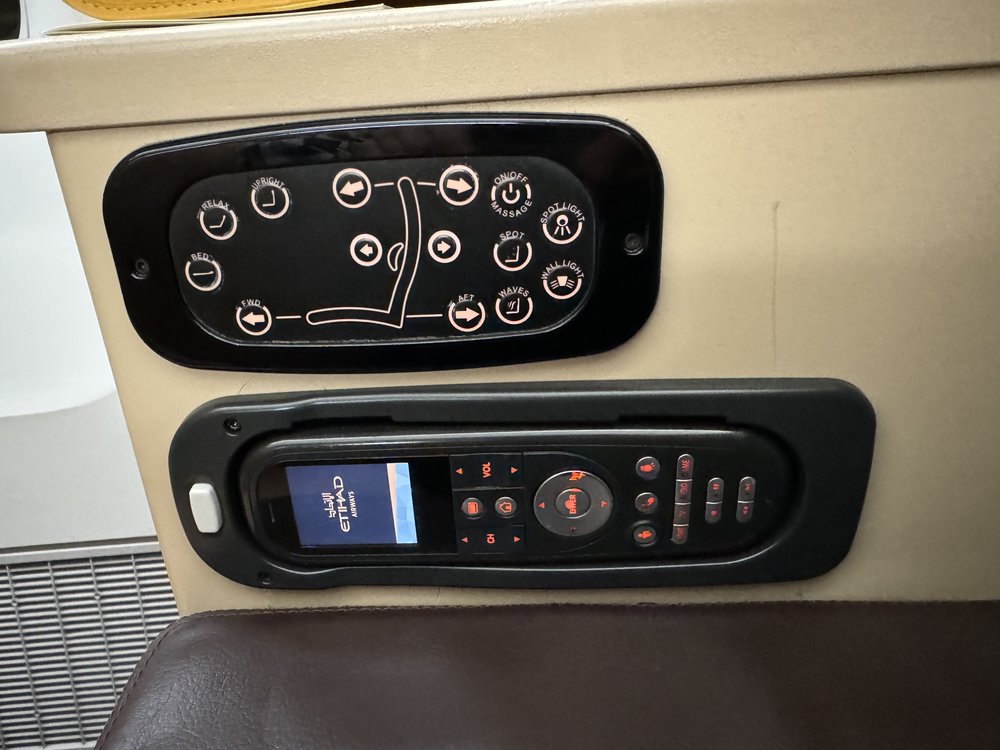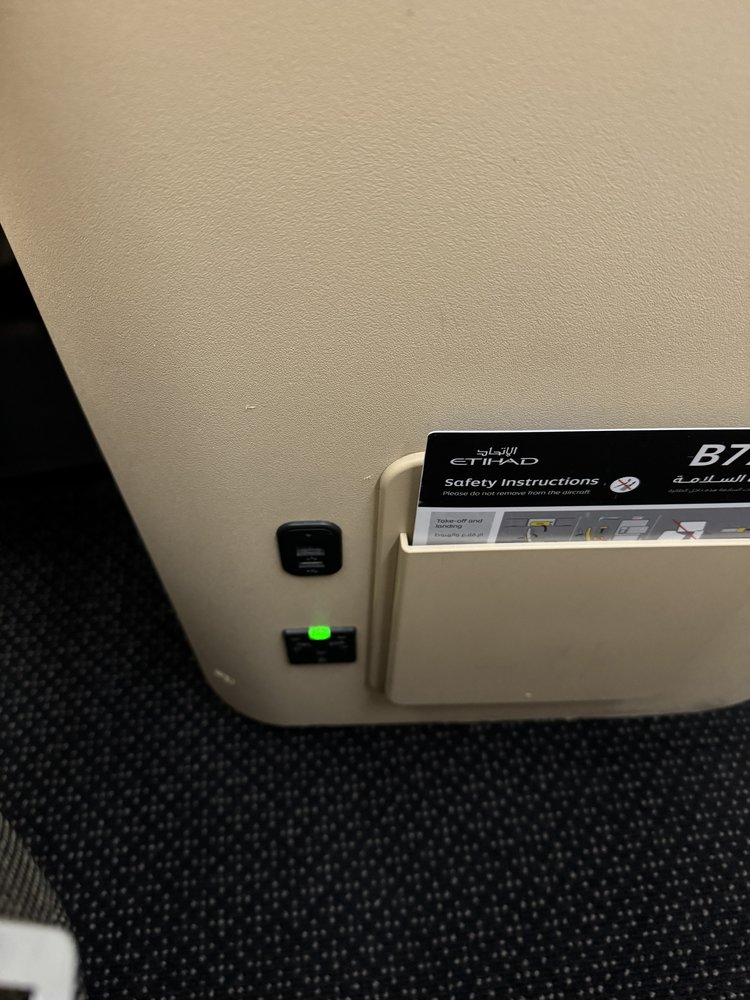 The Etihad 777-300ER Business Class seat design includes both pros and cons. On the positive side, the seats feature convenient power points, two USB A ports, and friendly cabin crew.