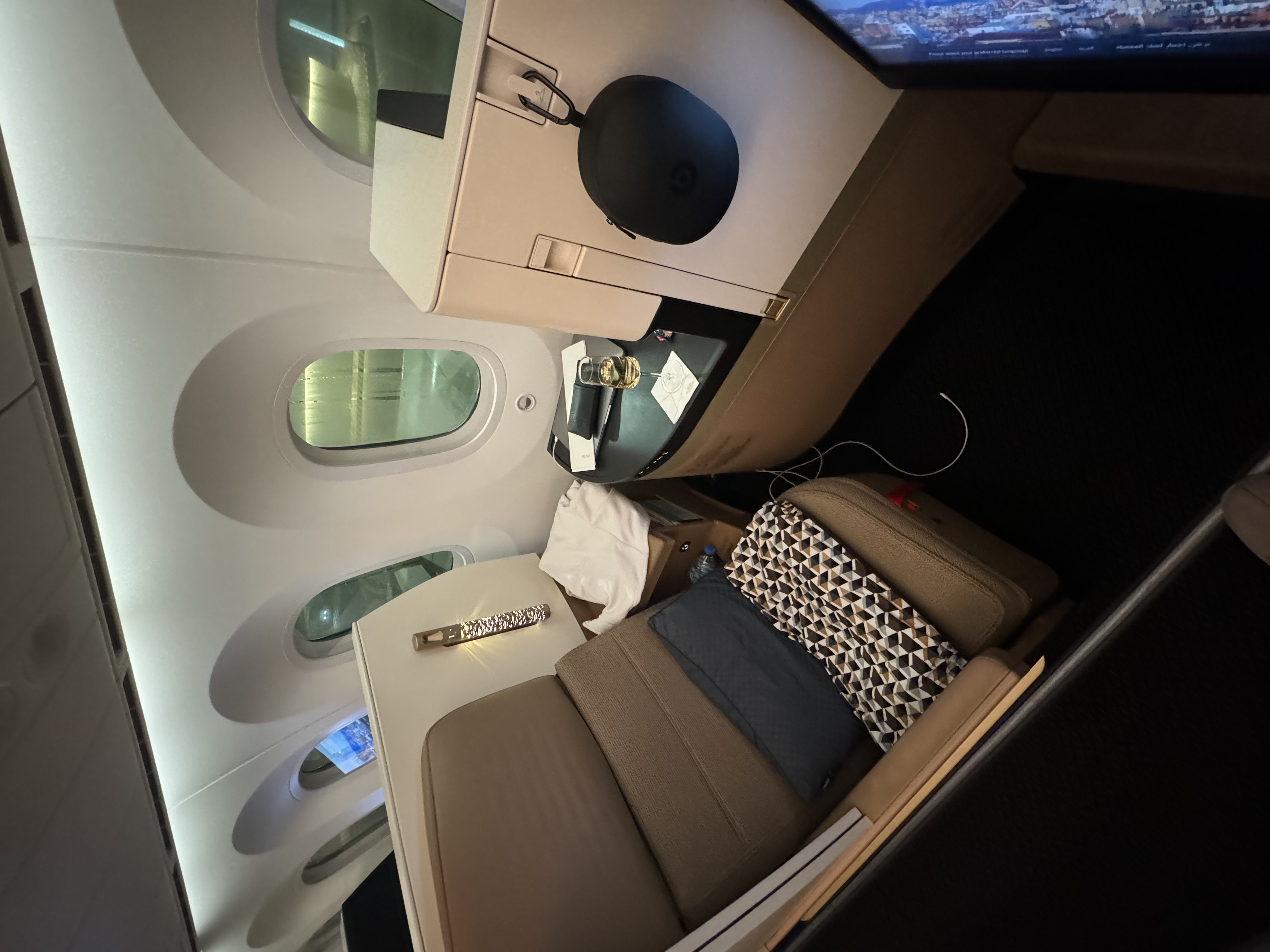 On our recent trip to Barcelona we had the pleasure of experiencing Etihad Airways Business Class on their 787-10 Dreamliner. Having previously flown on the 787-9 variant on the flight just prior to this one, we were keen to see how the newer aircraft compared. Overall, it was a nice experience with some notable differences.
