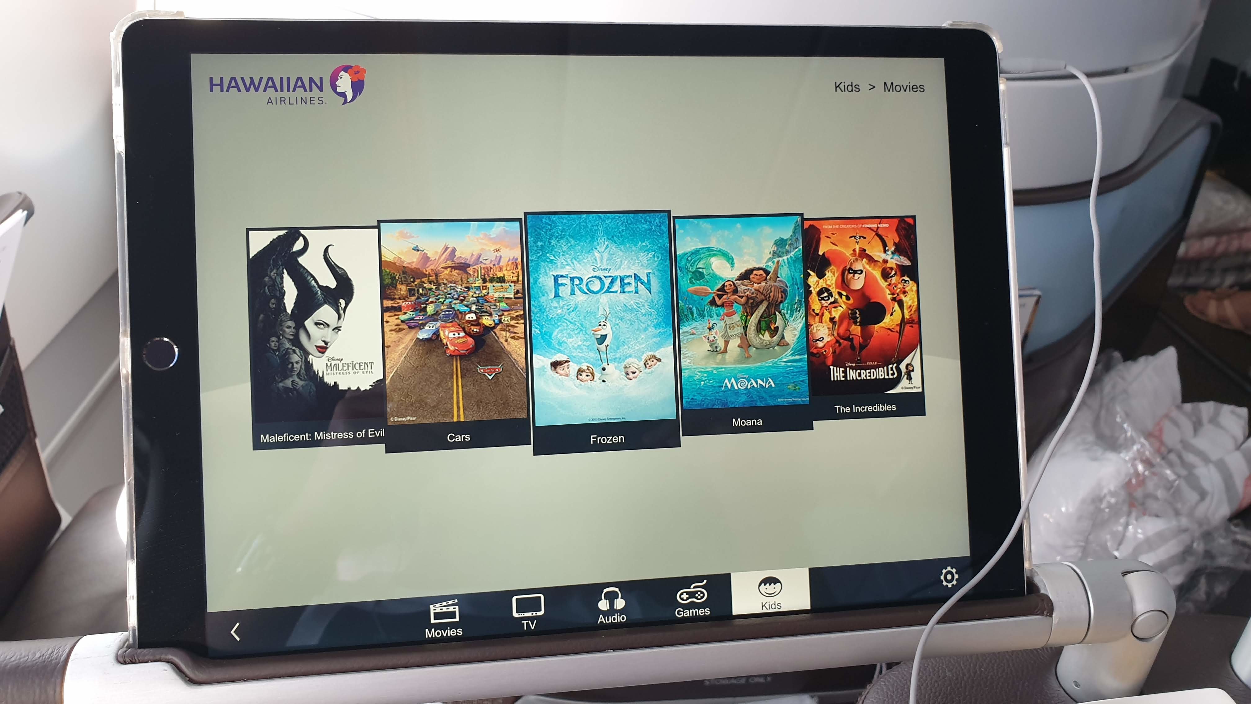 Flight attendants will pass out 13” Next Generation large format tablets designed to slide into the adjustable arm which allows viewing at a range of comfortable angles. The selection of movies and tv shows is relatively small considering the 10 hour flight length.