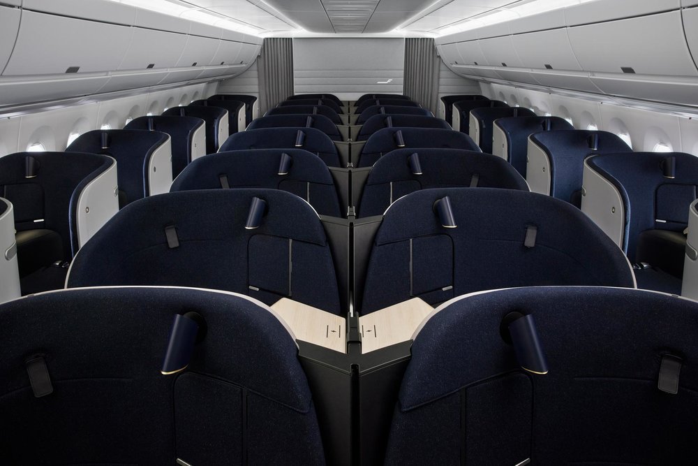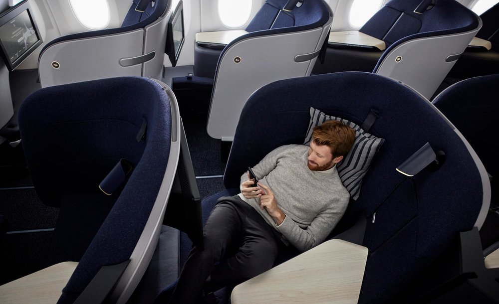 The lighting options in the seat allow tailoring the ambiance of every customer’s own “nest”. Along with a customised lamp that doubles as a reading light, a do not disturb light is included if total privacy is desired. The in-seat lighting complements new cabin mood lighting designed in partnership with Jetlite to combat the effects of jetlag. The design scheme is inspired by Nordic nature, complete with the northern lights as the cabin is dimmed for sleep.