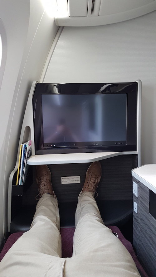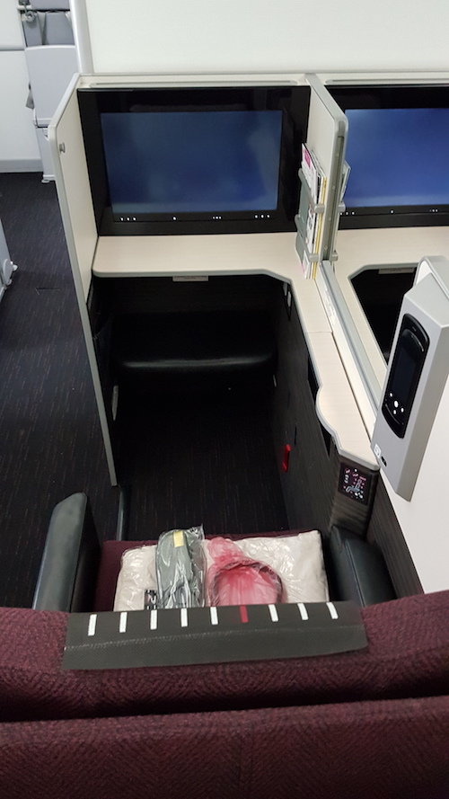 Another benefit of the Sky Suites is the width of the footrest, as the seat/bed is straight in the plane, not angled towards the centre or windows of the plane as in many other business class cabins, the width of the bed is the same at the top as it is at the bottom, meaning a lot more foot space as you're not angled into a 'cubby hole'.