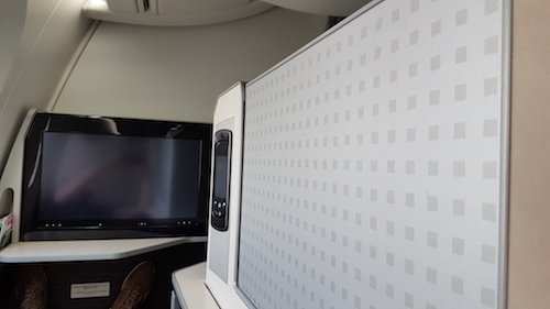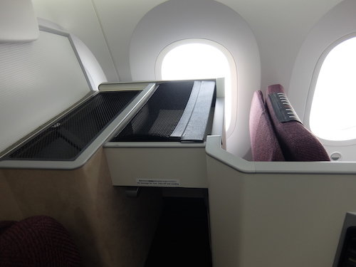 For passengers travelling together, the 2 side suites may also be a preffered option due to the position of the screens between the seats. In the centre pair, the seats are aligned, meaning there is a fixed wall covering the top half of the suite. There is a retractable screen, but as that only covers the bottom half of the suite, both passengers will need to lean forward to talk/see each other.