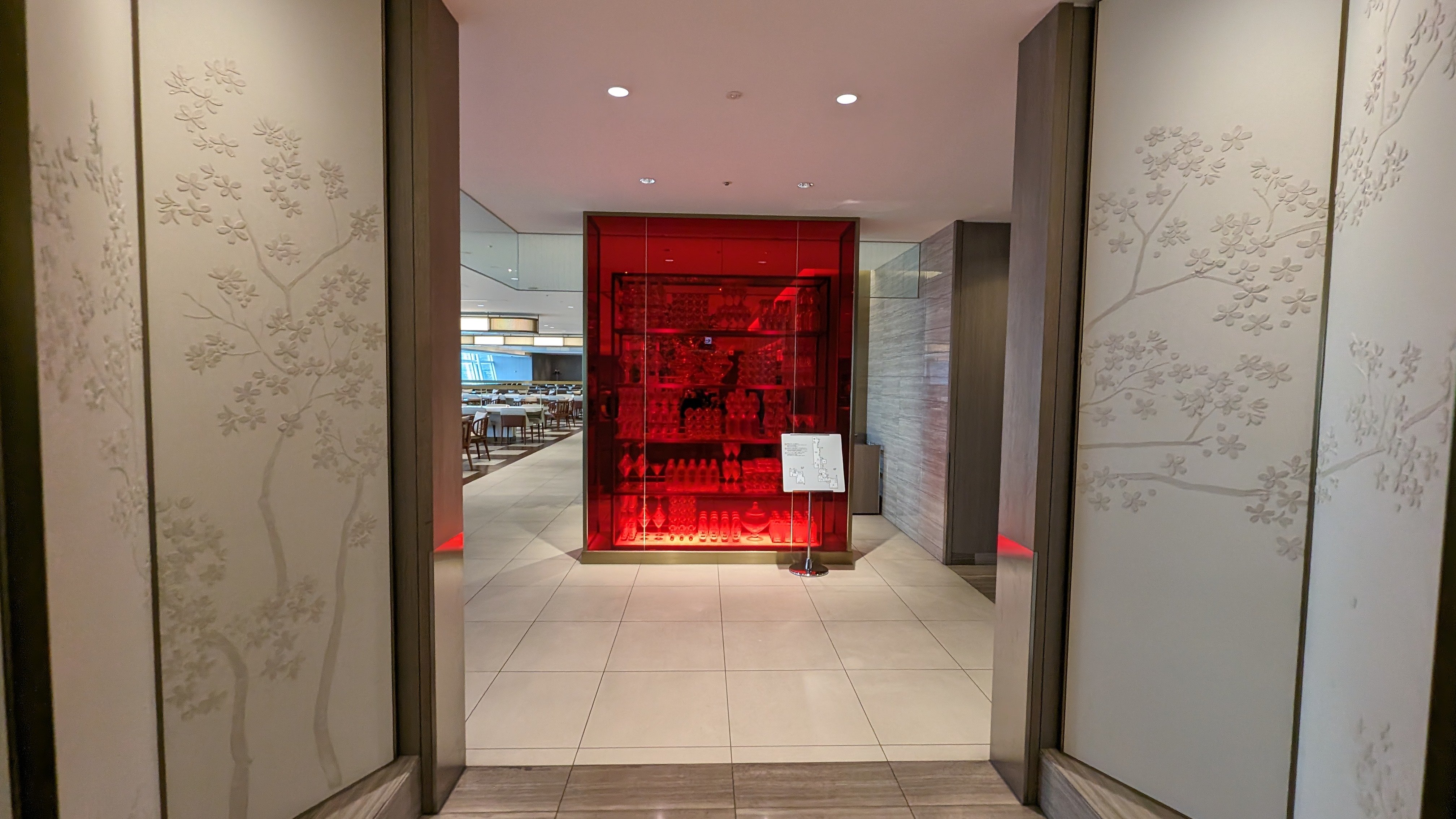 Located in Terminal 3, left of the central security checkpoint, head up the escalators opposite Gate 112, and you’ll find the entrance of the JAL First Class Lounge. Open from 06:00 to 01:55, Japan Airlines have catered to almost all hours of the day for passengers, only missing the 02:00-05:55 time window. Those who can gain access are strictly passengers travelling First Class with JAL, or a oneworld airline, Qantas Platinum, Platinum One and Chairman’s Lounge members, oneworld Emerald passengers flying on a oneworld airlines flight in any cabin class (+1 guest), JMB Diamond members (+1 guest) and JFC Premier members (+1 guest).