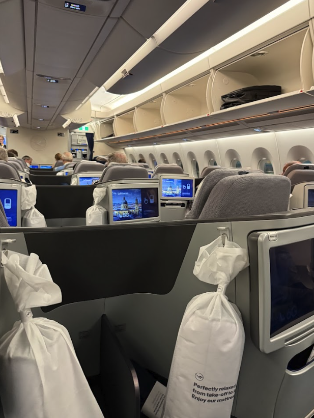 I flew in Lufthansa's A350 Business Class, one of their older models which has a 2-2-2 configuration. They've recently introduced the new Allegris Business Class cabins with 5 distinct seating options, all with direct aisle access, and I'm curious to experience one of these newer cabins in the future to compare the features.