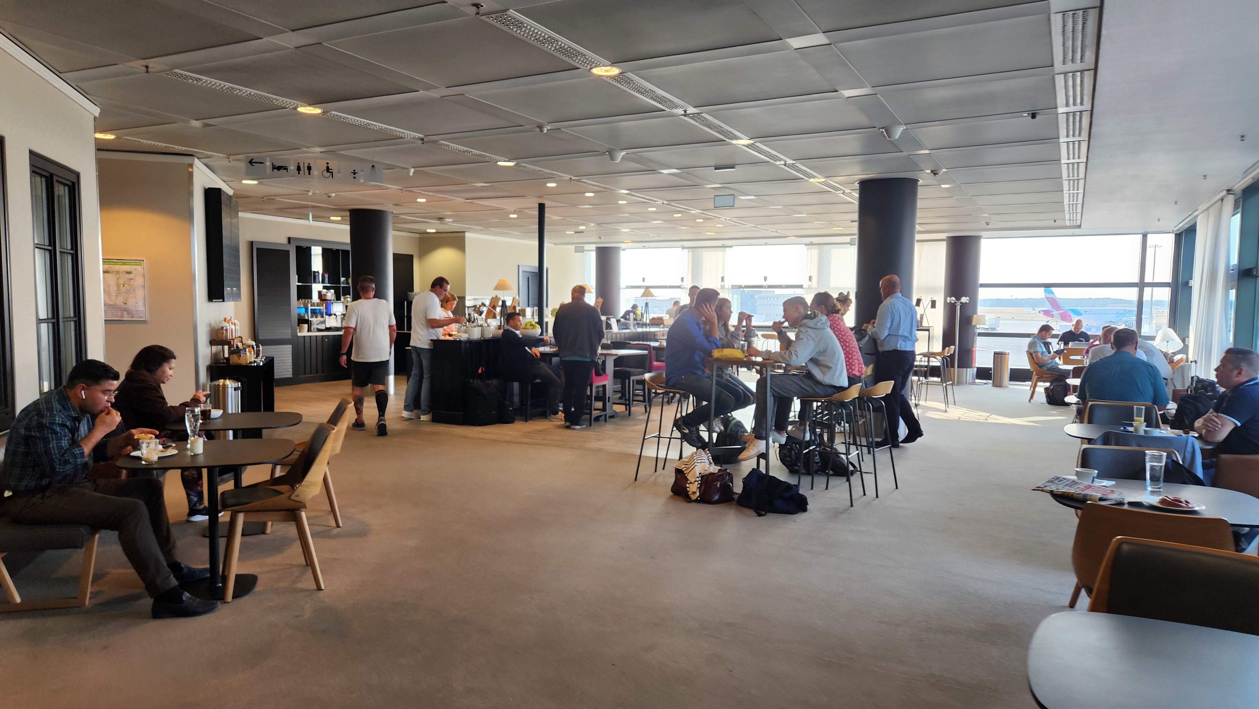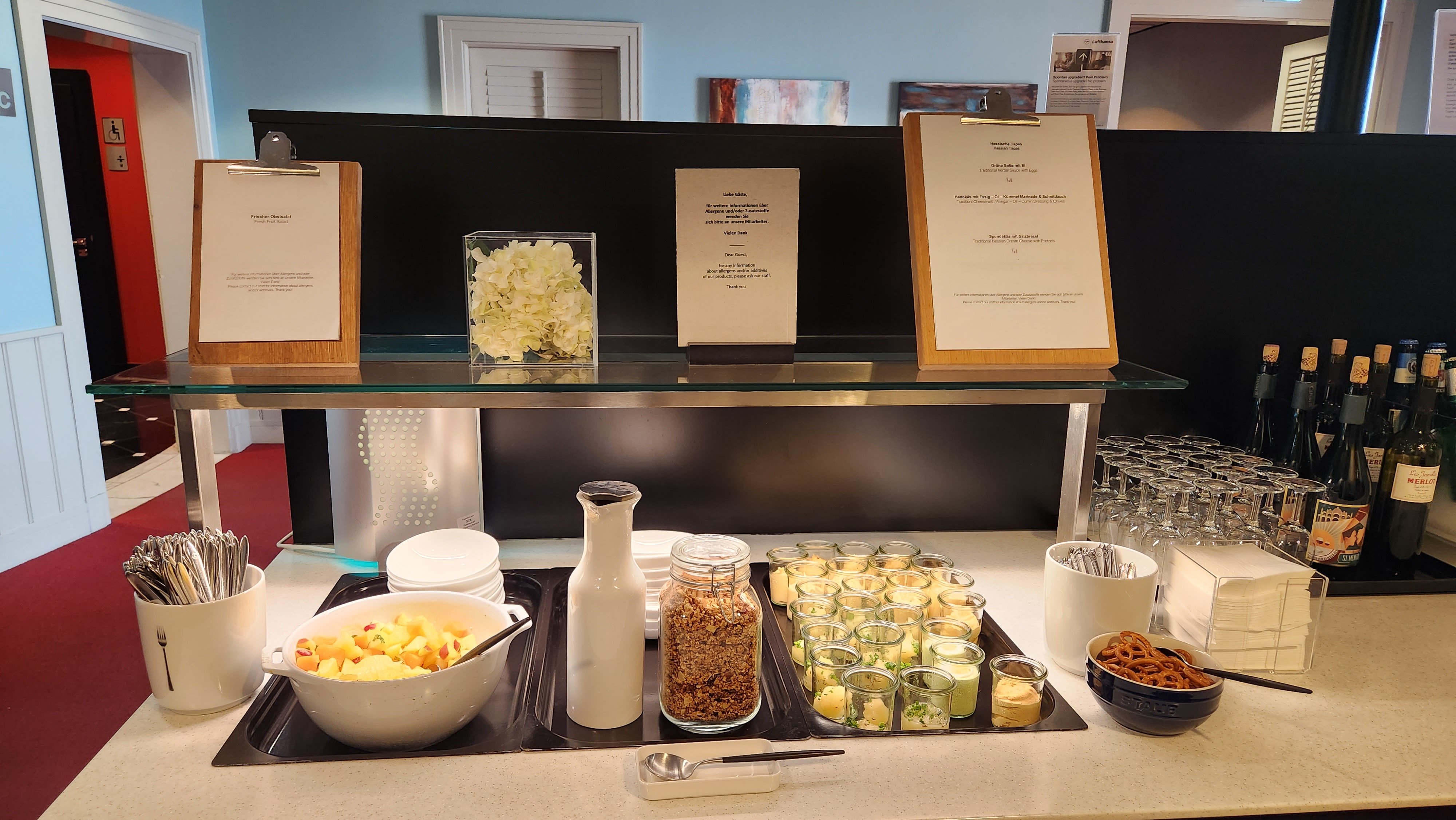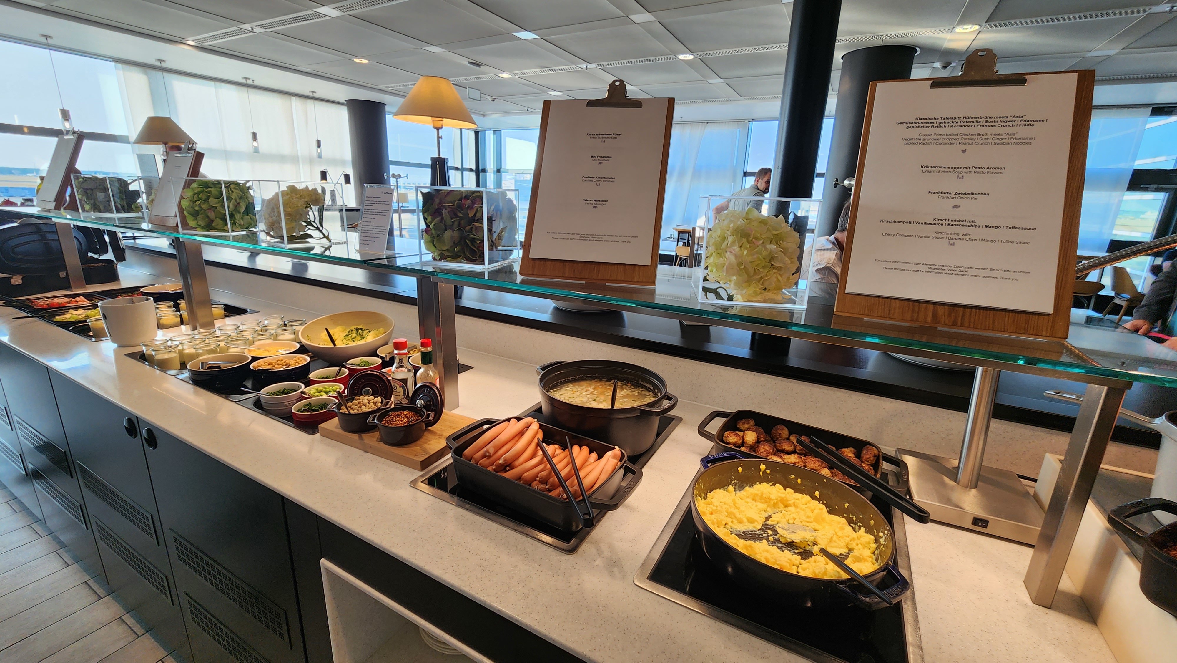 The Lufthansa Panorama Lounge in Frankfurt, stands out with its unique design. Welcomed by friendly staff at the entrance, and catered for by other staff throughout the lounge made the overall experience relaxing and enjoyable.
