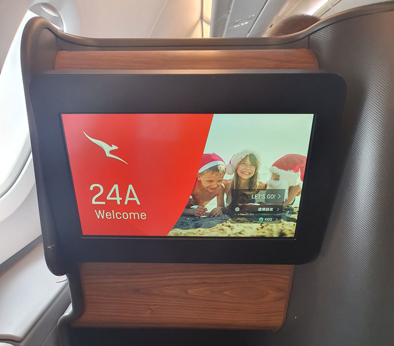 Inside the armrest is a vanity mirror and your remote to control the entertainment screen. The 16 inch screen (upsized from the previous 12 inch A380 screen) is filled with on-demand entertainment options to enjoy including Hollywood blockbusters, Australian entertainment and the moving map feature.