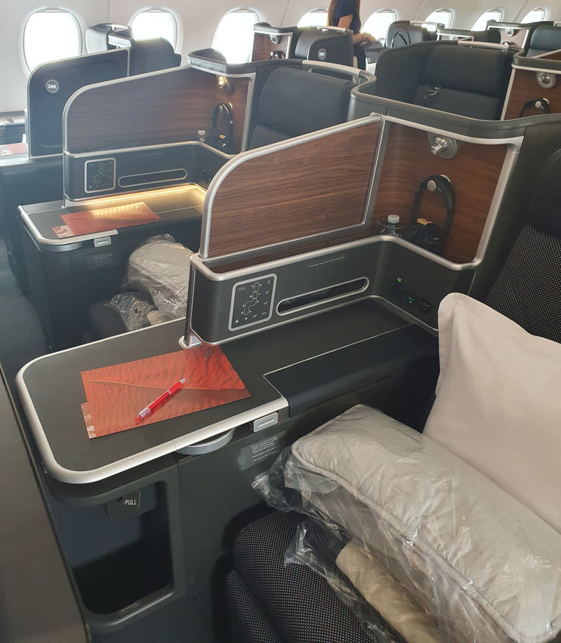 The upgrade to the Business Suite on the A380 from the old Qantas Skybeds is a very welcome change. The new suite is larger with more space and storage around the seat, everything you need can be found within arms reach, including the seat controls, headphone jack and charging stations.