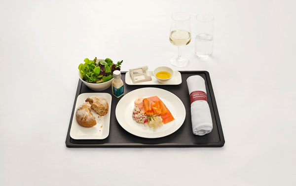 Long-haul passengers in Business Class get the chance to enjoy delights from the Lej da Staz restaurants, which stands by idyllic Lake Staz near St. Moritz. Guests will enjoy smoked char with barley salad to start, braised beef in red wine sauce with polenta and alpine cheese for main followed by a wintry sweet chestnut mascarpone mousse on a white chocolate and pear slice for dessert.