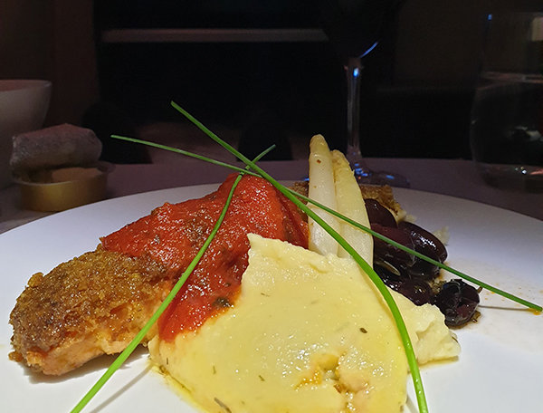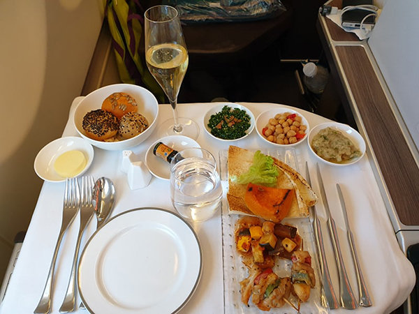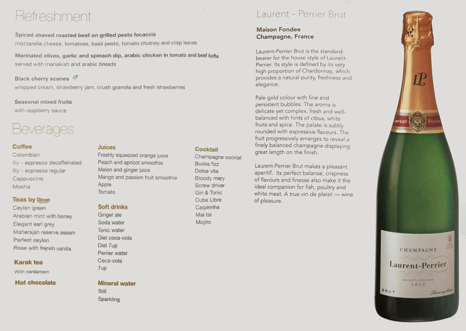 As always the dining experience onboard Oman Air was exquisite. From starting with the traditional dates and a welcome drink after boarding to the range of dishes all served on elegant dinnerware and accompanied by a good selection of drinks including Cocktails and Laurent-Perrier Champagne.