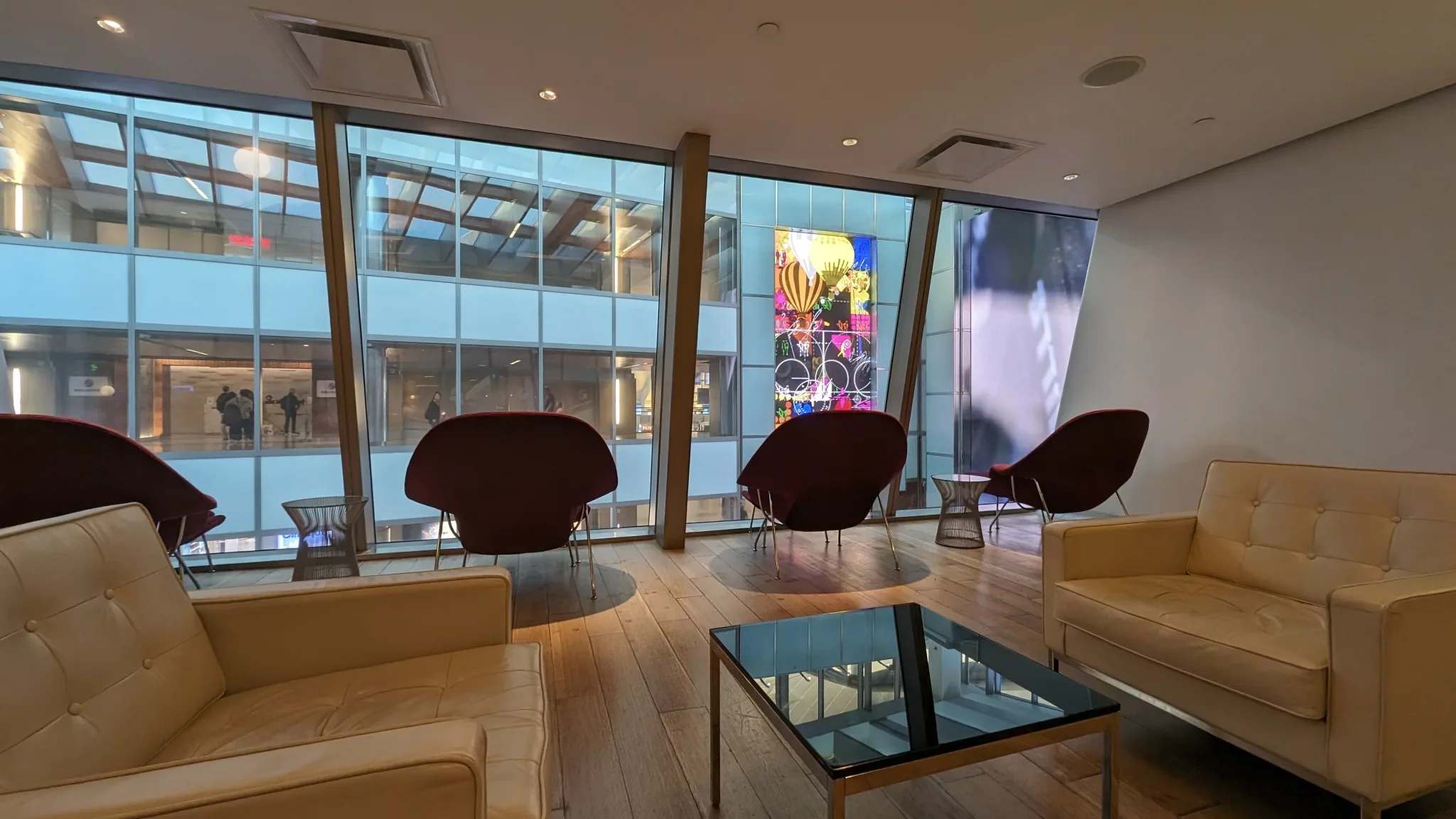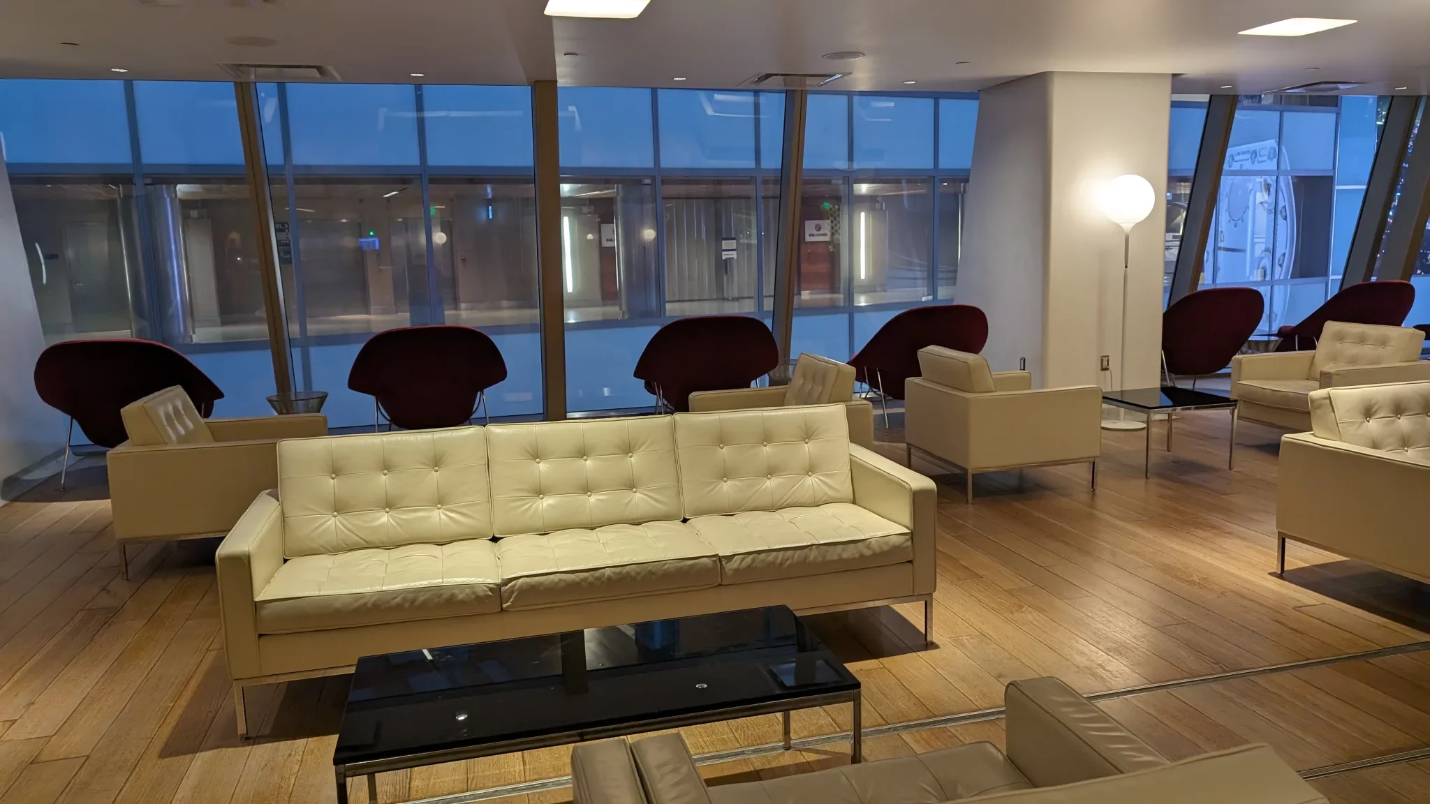 Featuring a spacious and contemporary interior, guests are greeted by Californian Knoll furniture and American oak walls creating an inviting atmosphere. First impressions of the Qantas First Class Lounge is that it is quite large, although the seating area, while not overly private, offers ample space for relaxation and dining.