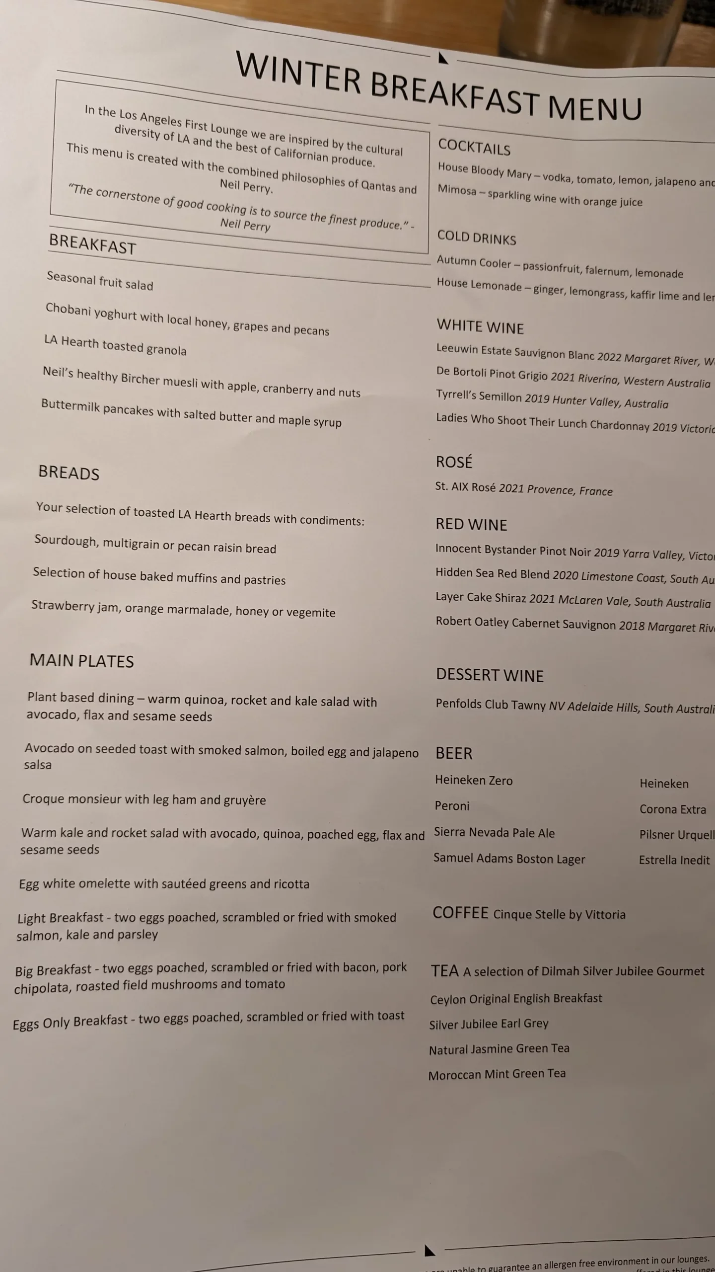 Served not overly hot (this is the case with most American-made coffee), we can assume that Qantas has sent their own trainers from Australia to up-skill the local staff to be able to achieve that result on US soil. It is also important to note that Qantas specifically provided a beautiful coffee machine and Vittoria coffee beans from Australia to enhance the overall experience.