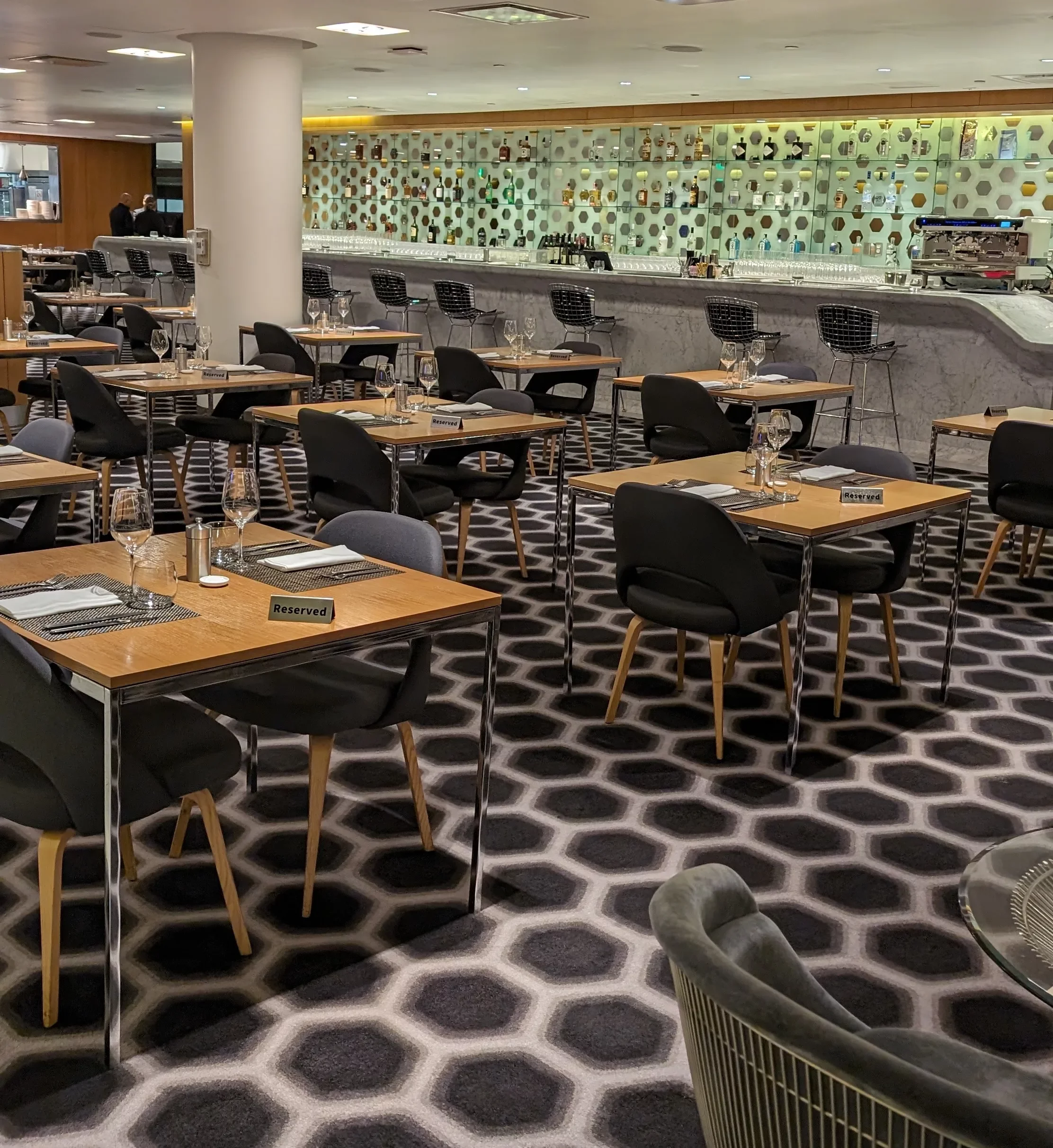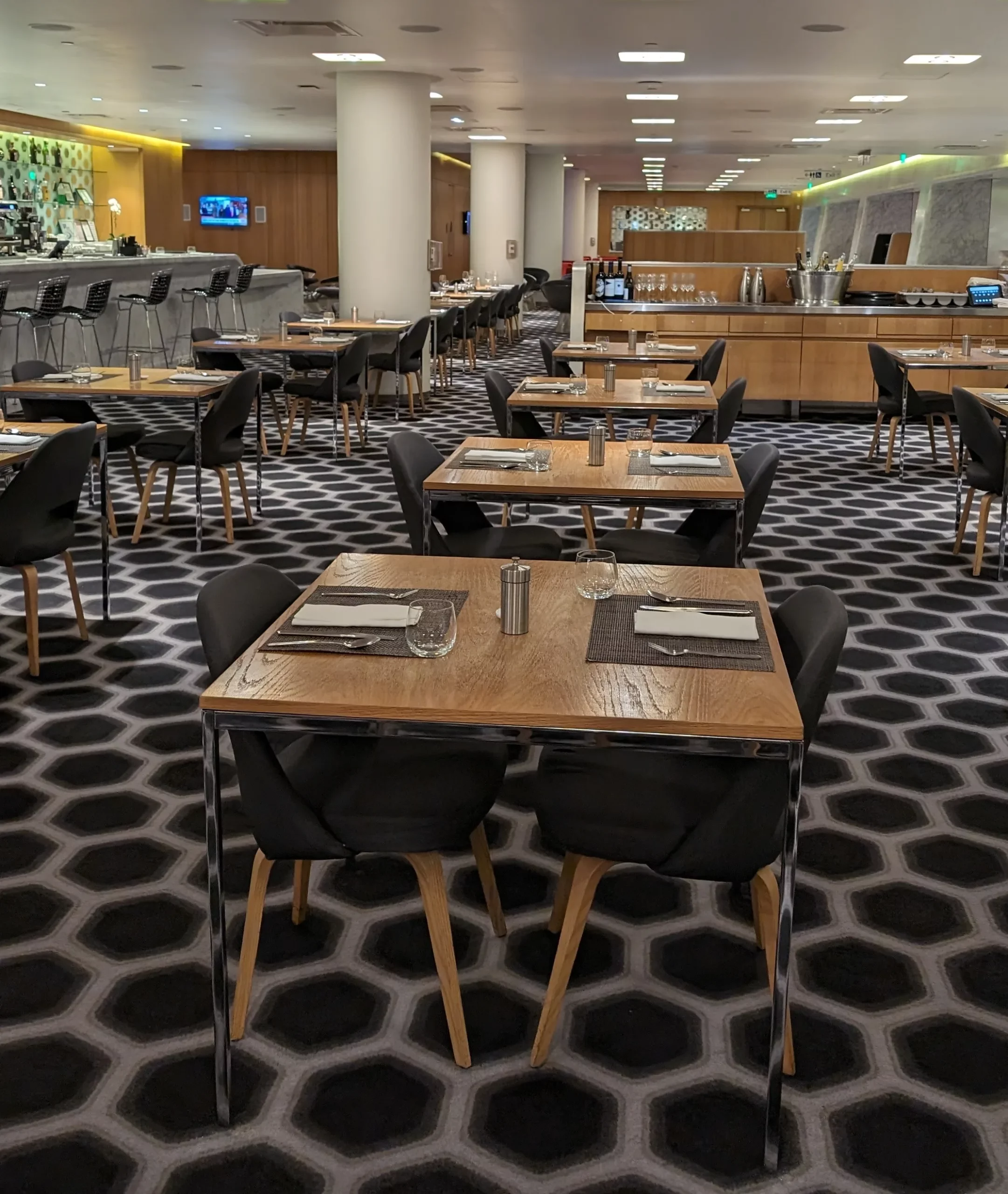 There are also no tarmac views, which is disappointing for a First Class Lounge, however the natural lighting filters through a glass wall indirectly which provides nice lighting. Similar to Sydney and Melbourne First Class Lounges, patterns, colour choices and design styles are the same, and yes, the disorienting carpet, (which perhaps is starting to get a little dated in feel) was also in the Qantas First Class Lounge in LAX Airport.