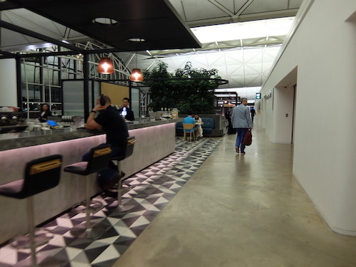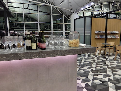 The staffed bar at the front of the lounge is a comfortable place to while away the time with a fully stocked bar, self serve wine and snacks, and a selection of magazines.