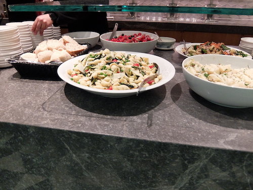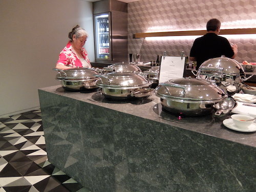 The dining options in the Qantas lounge included plenty of self serve dishes, including hot meals, fresh salads, and cakes. The food was well stocked, nicely displayed and readily available. A coffee machine was available to use and staff were more than happy to supply additional items such as soy milk upon request.