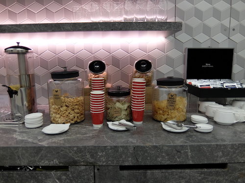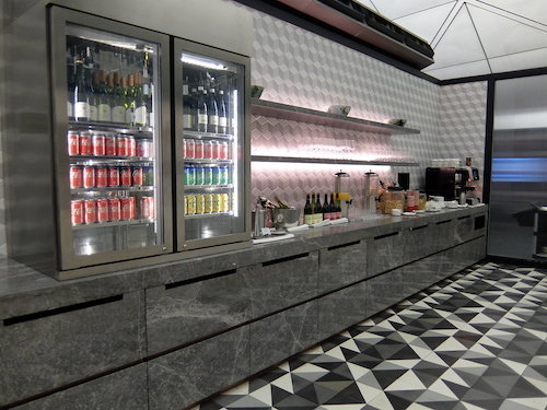 A second self serve area includes a variety of beverages, with soft drinks, wine, and tea & coffee available along with few bar snacks.