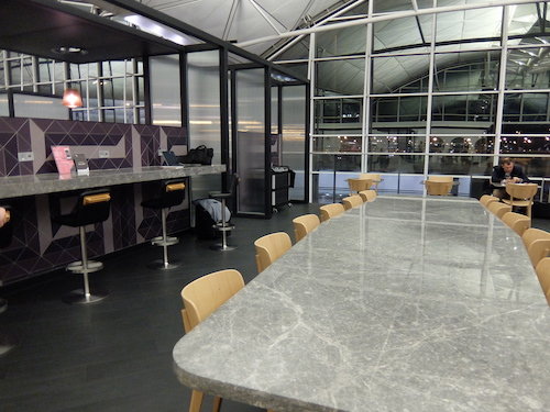 There are a variety of dining areas within the lounge, included large tables for communal or group dining, and small tables for individual dining.