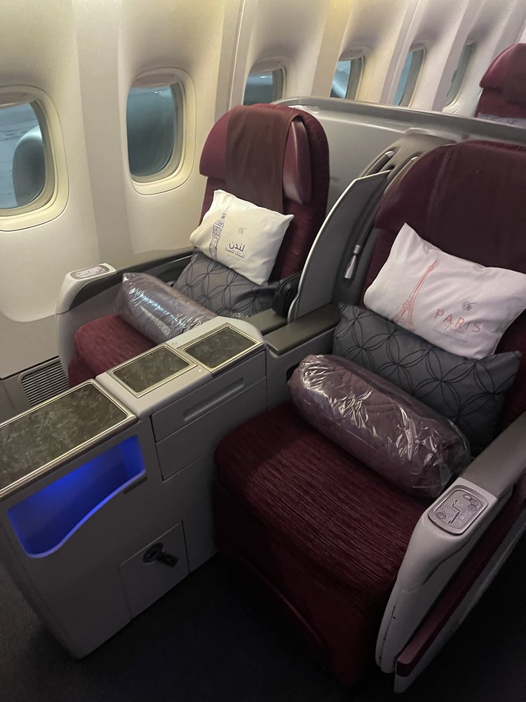 We went into this flight expecting to be experiencing the luxurious Qatar Airways Qsuites on their Boeing 777-200, however were a bit shocked to find ourselves onboard the older Business Class in their Boeing 777-300ER.