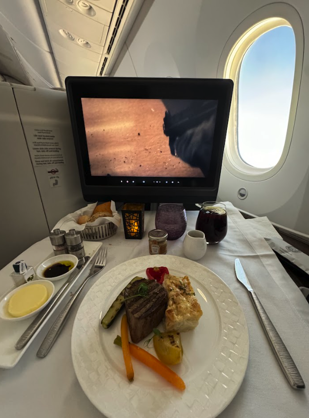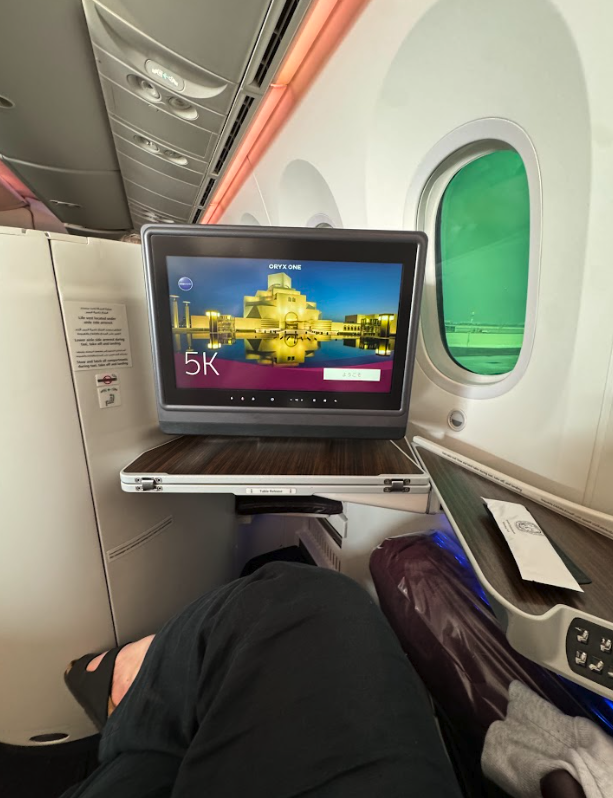 This flight is on their 787-8 aircraft, fitted out with their older [and less advertised] 'Super Diamond' Business Class seat. The same seat design that operates on their A380s out of Sydney for reference. Whilst a much more open design and far less private than the Qsuite, it was still a great flight and very comfortable seat design. Not to be mistaken with their 787-9 that has a door included, their 787-8 is fully open in a 1-2-1 reverse herringbone configuration.