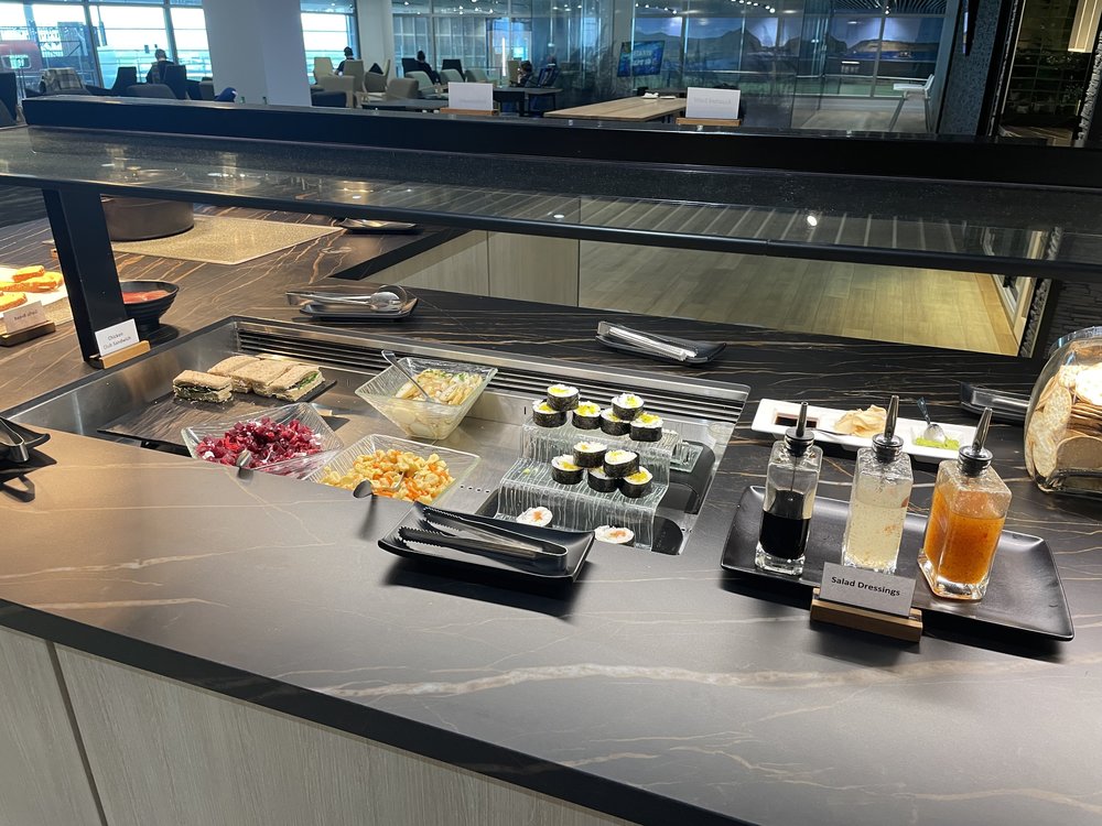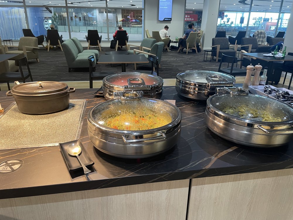 The lounge is open from 4:30am until 11pm daily. After you pass through security and enter the international terminal, the lounge is located on the second level just after the large duty free shop. You’ll find the escalators on your right, heading to the Strata Lounge along with both Qantas and Emirates lounge.