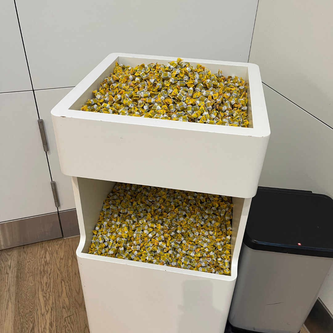 As soon as you walk in, there is a smaller lounge located to your left with ground-floor seating and some sweets provided in a large bowl, with the main section of the lounge located upstairs. Here, the SWISS Business Class Lounge was sectioned into a dining area with tables and chairs, and then couches surrounding it. For us to arrive at 6 a.m., it was very busy, with most seats and tables taken. We were able to find a lounge chair and settled in towards the back of the lounge.