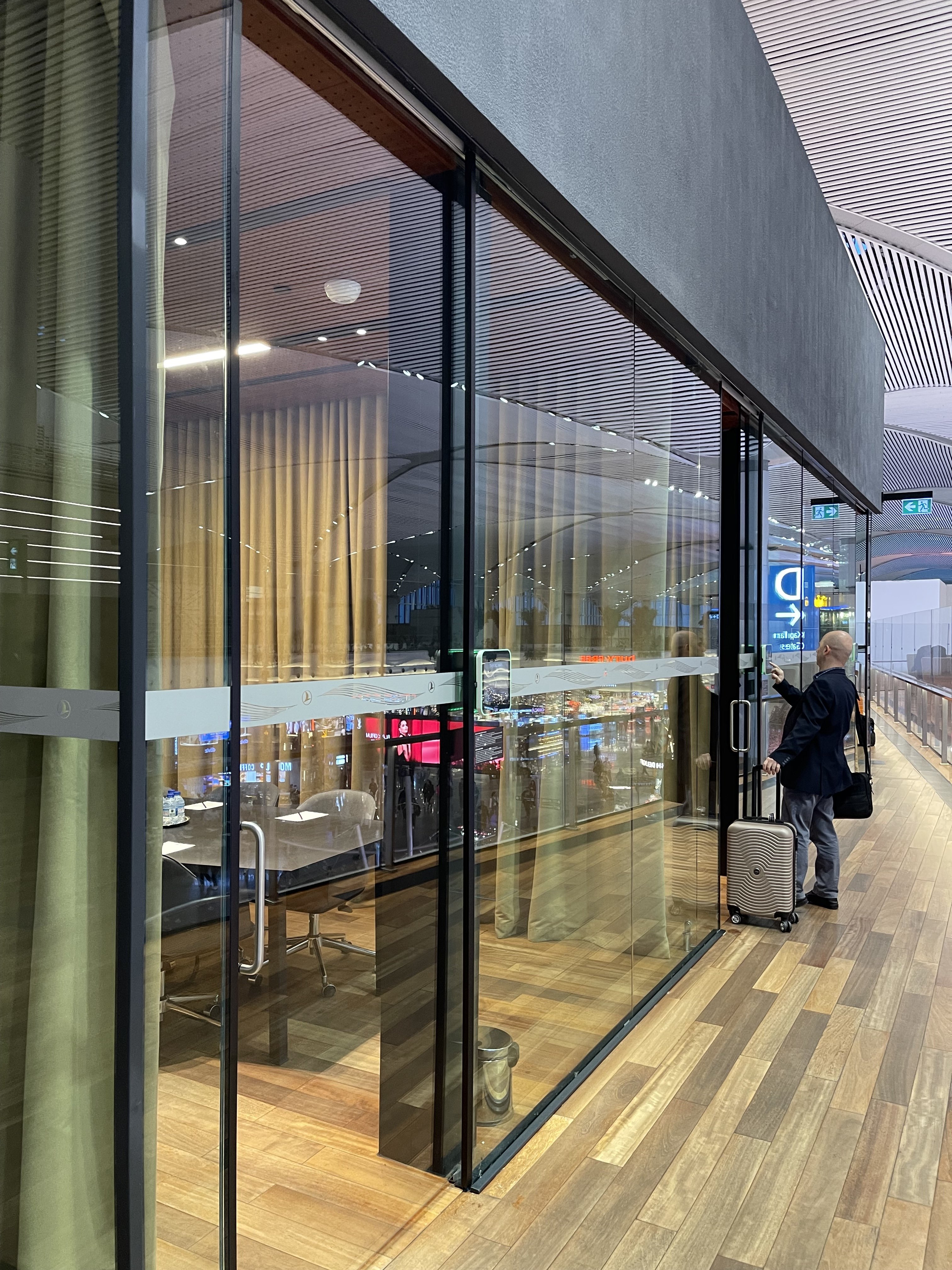 Some added amenities in this lounge included designated work spaces. These were not your usual cramped space, but instead had a large sized table (enough to fit 6 people around), a large screen, big glass sliding doors, luxury curtains and also a keypad to use to enter. These were all occupied so unfortunately we couldn’t look inside.