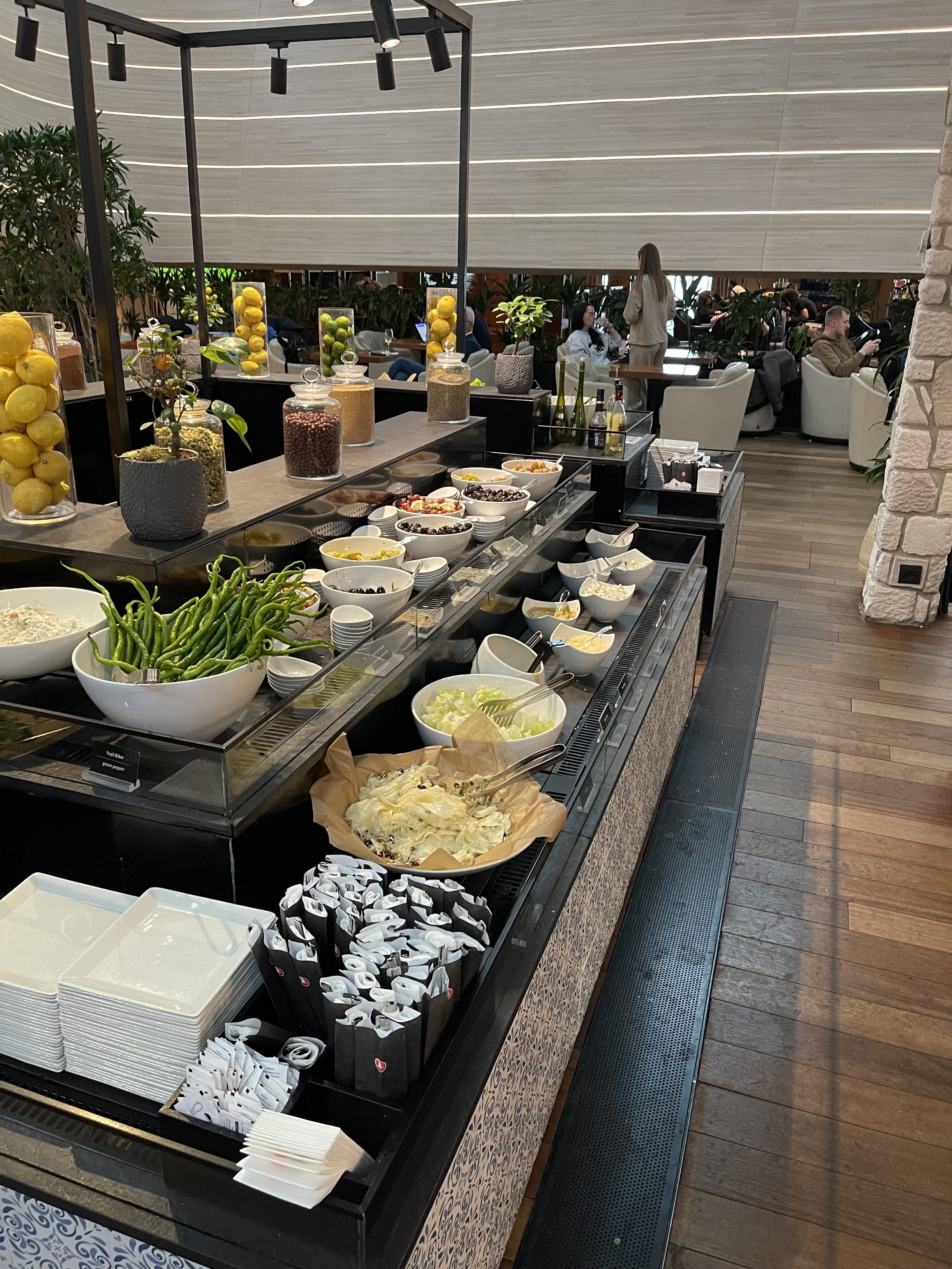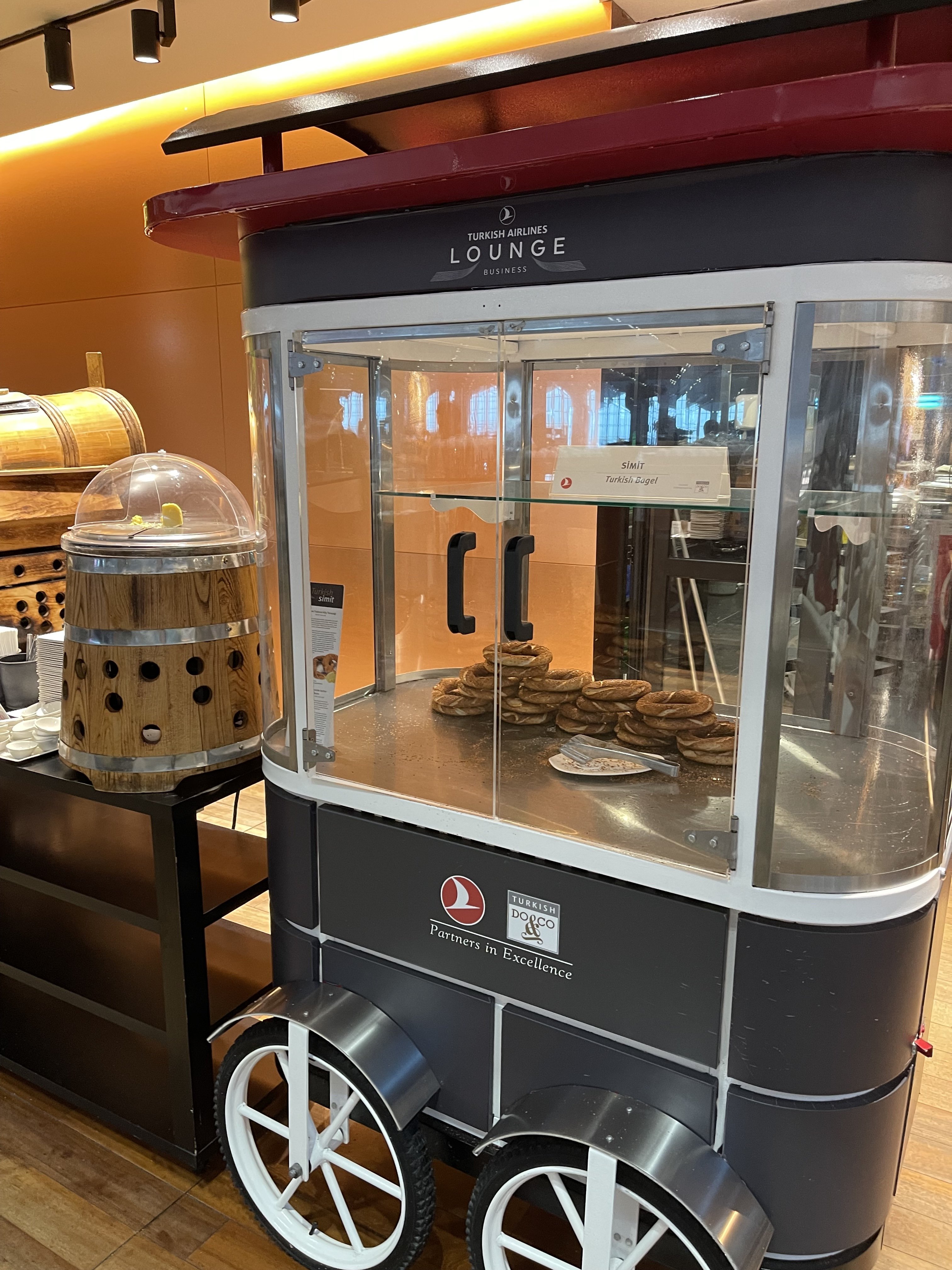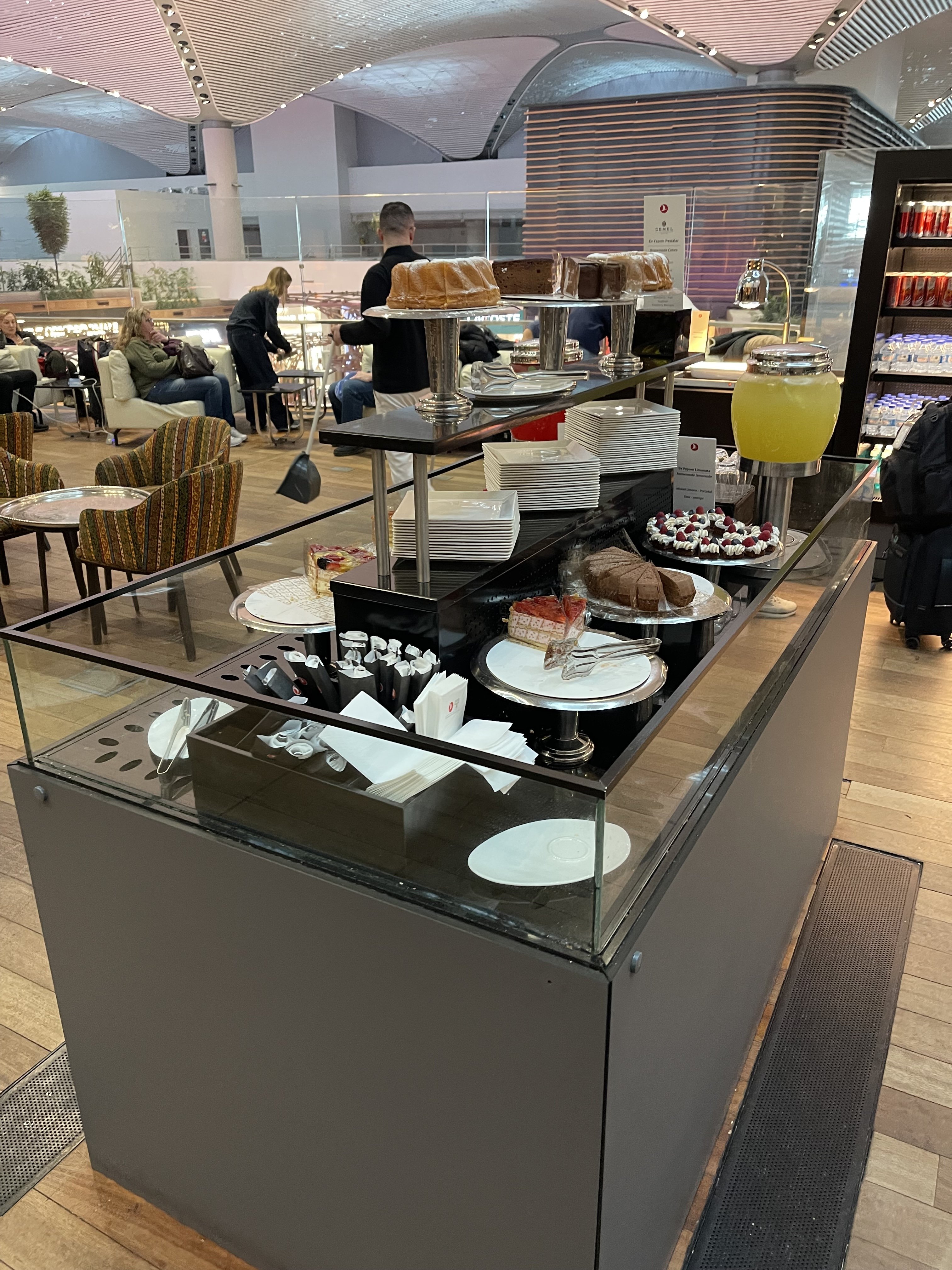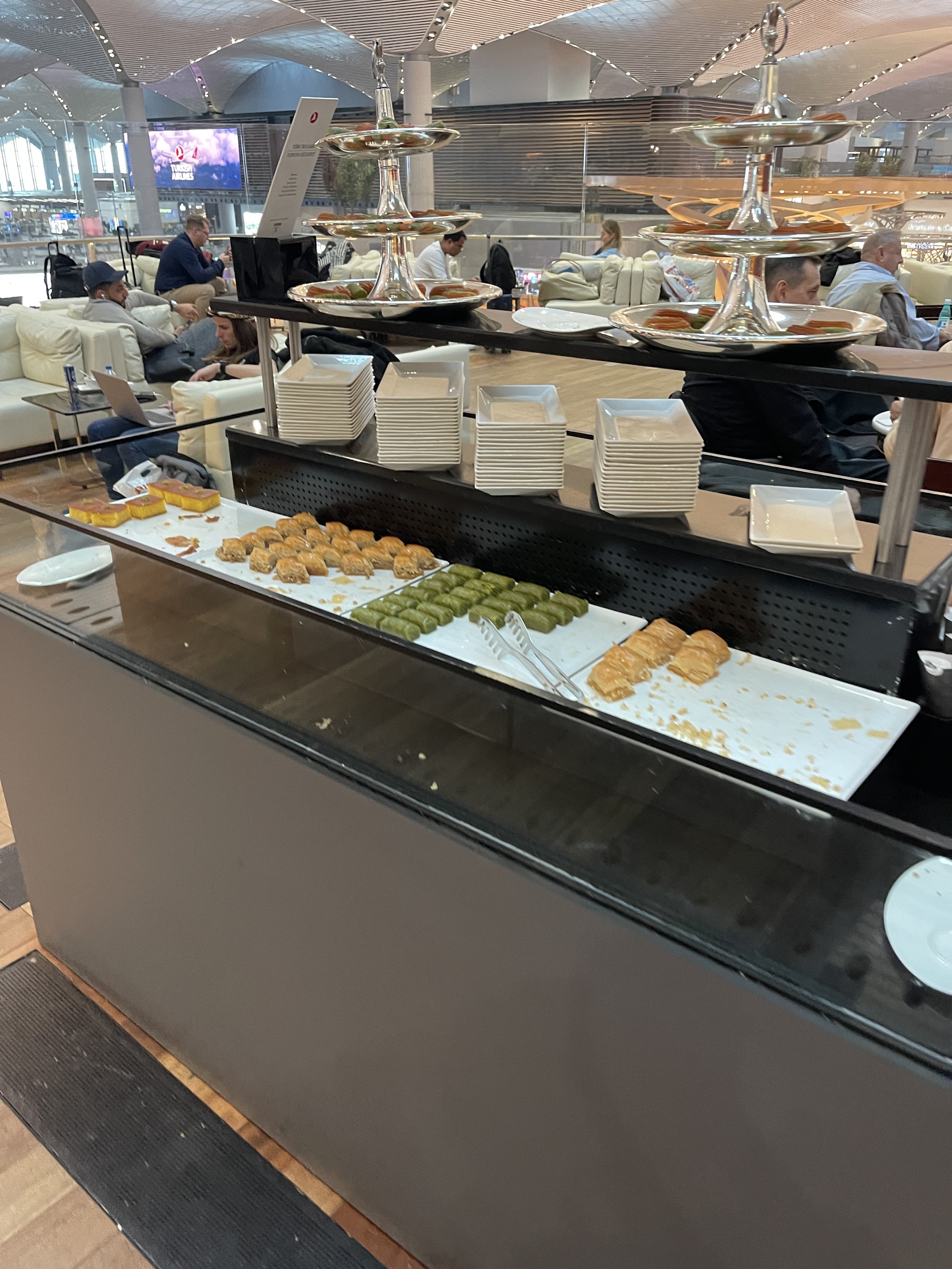There were a good amount of food options in the lounge, ranging from self service style to chef prepared dishes. The self service consisted of a range of cheeses, salads, yoghurts and fruits, while there were also a few dessert stations scattered around offering traditional Turkish treats or your standard sweets such as chocolate cake. There was even a pretzel cart!