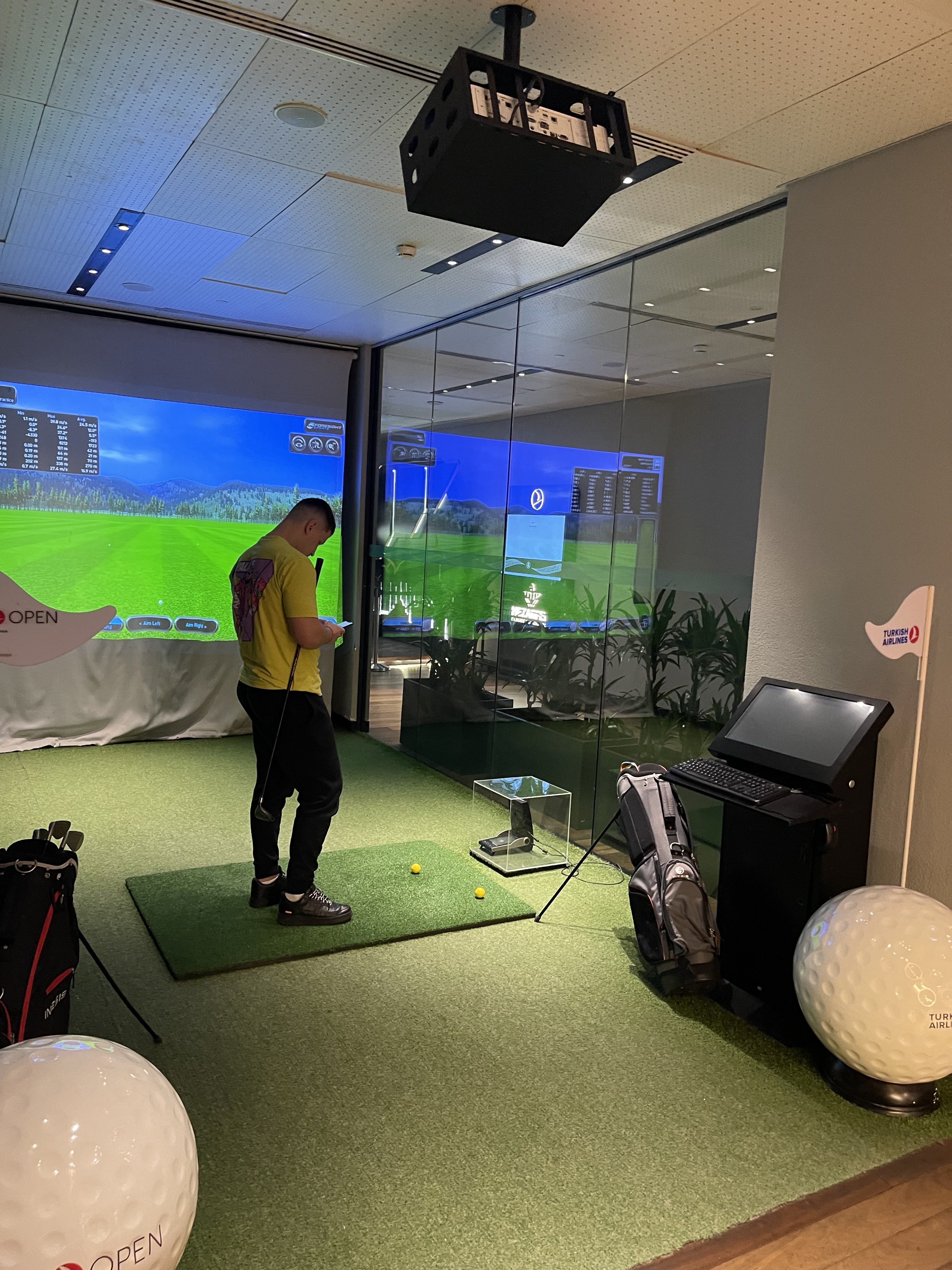 Continuing through we found another dining area and chef stations where you could request certain foods to be made up. Looping back we found the toilets tucked away towards the back of the lounge along with a golf simulator. A kid play area was also available which features a slide, popcorn machine and a slot-car racetrack.