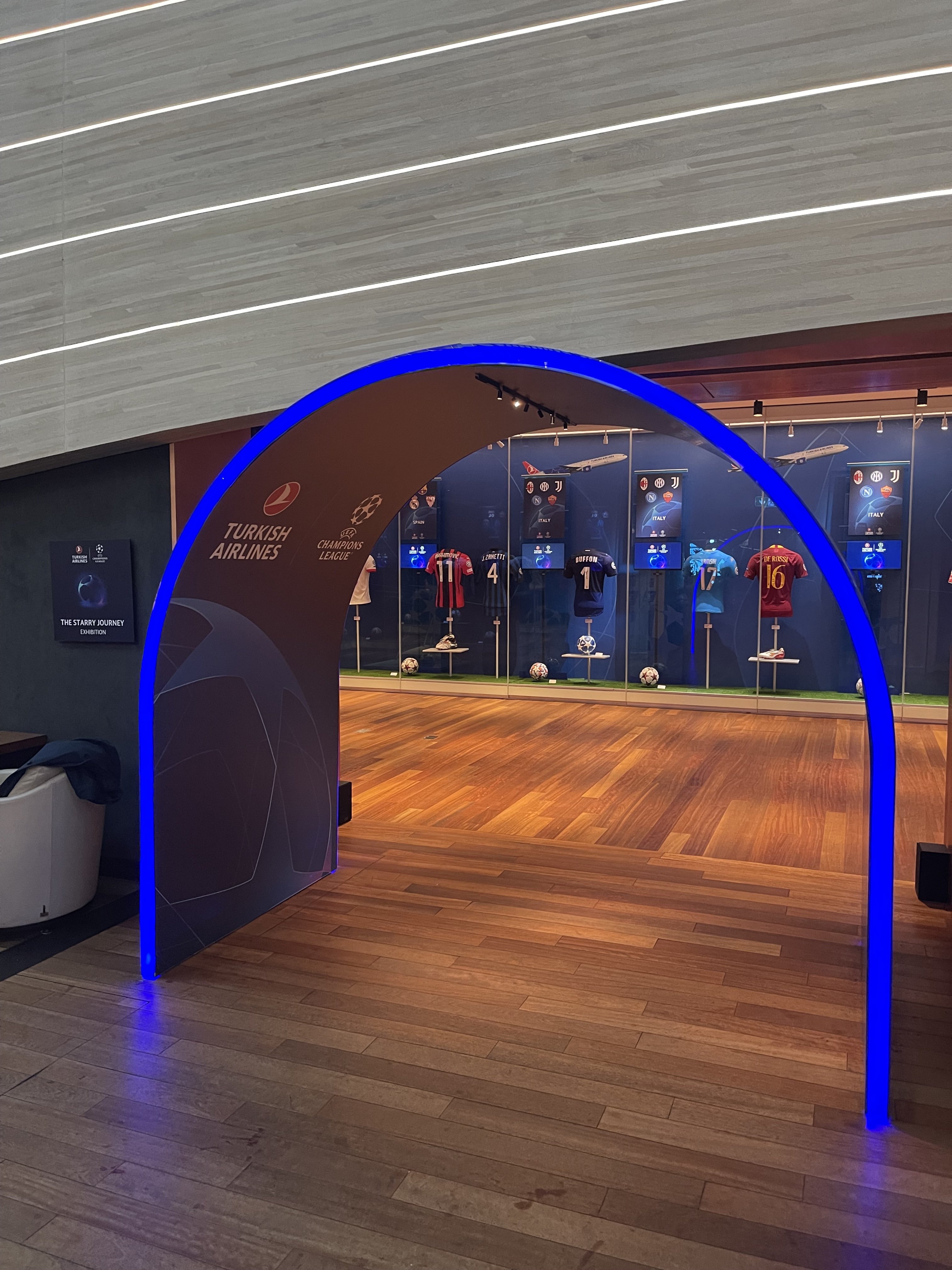 There are 33 jerseys, 33 match balls and two pairs of soccer boots, representing 33 iconic teams. This exhibit remains open until the UEFA Champions League final, which takes place on 1 June 2024. Although it’s a nice touch and offers an educational and personal experience, it would be nice to see this space used for some extra lounge seating.