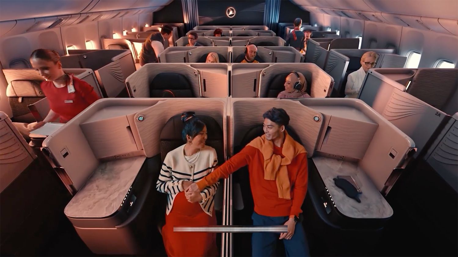The new Business Class seats will be featured on the carrier’s transcontinental flights, installed on the airline’s Airbus A350’s on order, starting in 2026. They will also be retrofitted on its fleet of 33 Boeing 777 aircraft. When the 777s are reconfigured, the size of the business class cabin is expected to be reduced from 49 seats to 44 seats.