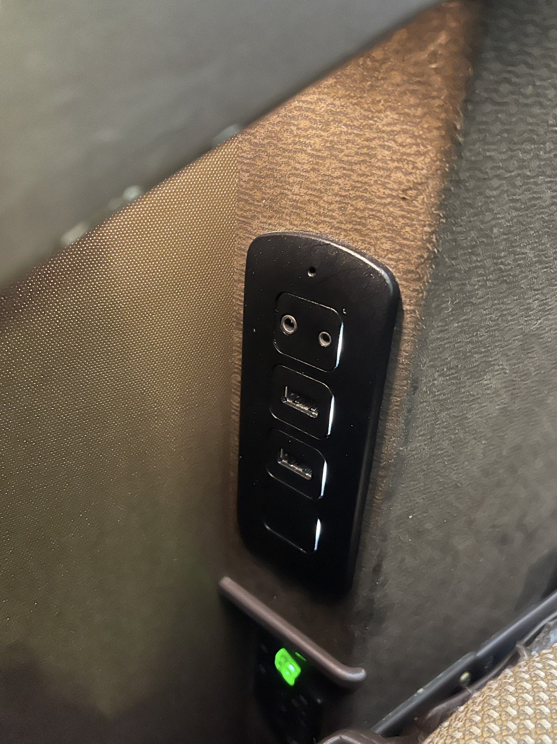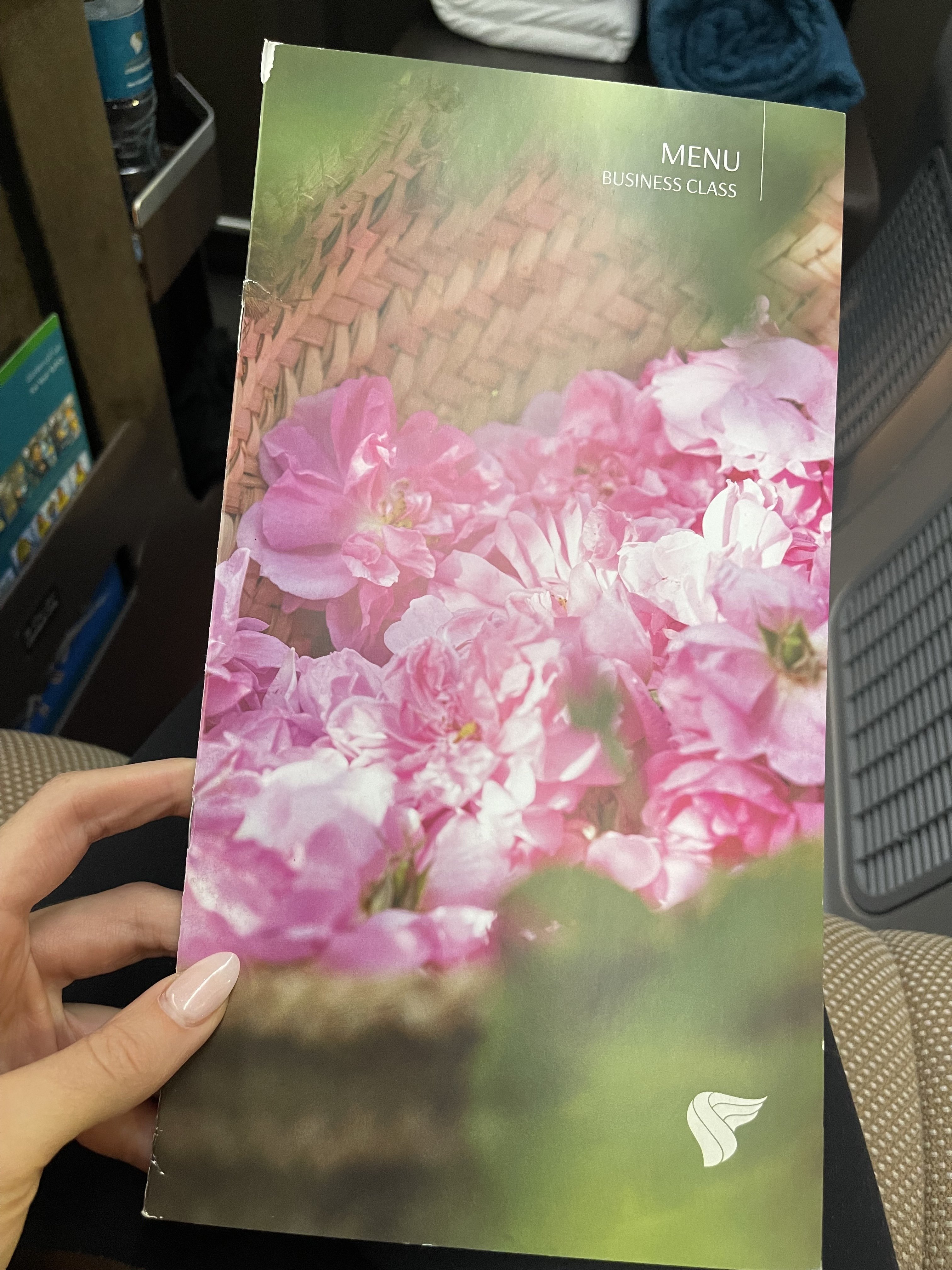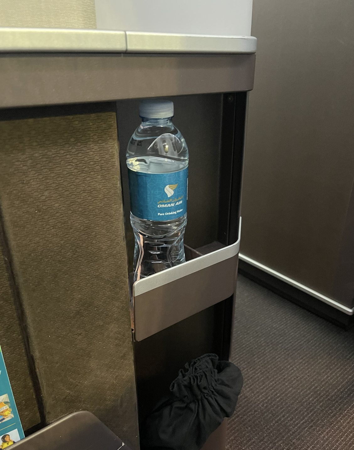 There were also some headphones stored to the left of our seat, along with a water bottle. The headphones were good quality and provided a nice amount of noise cancelling throughout the flight.