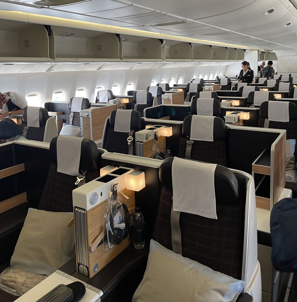 The SWISS Boeing 777-300ER Business Class is in a 2-2-2 layout, with alternating single seating on the window sides. We noticed mostly couples occupied the double seats on the window, so most passengers were not having to crawl over a stranger to get out of their seats.