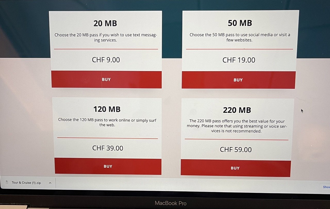 Wifi was available on this flight but it did have to be purchased, with four options being available depending on what you wanted to use data for. You could purchase this on any of your devices, but had to select a specific plan to be able to use data on more than one.